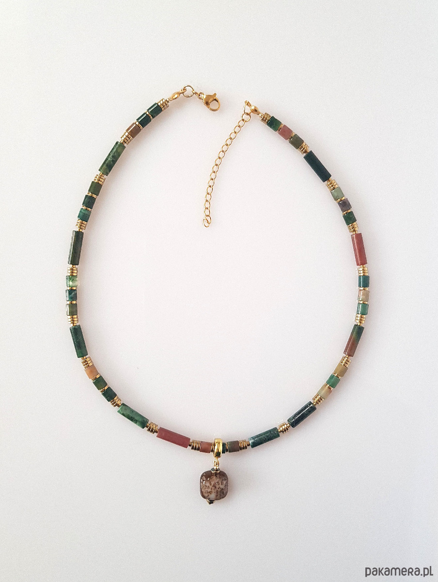 Naszyjnik z Agatem Indyjskim v Ciemny Krótki