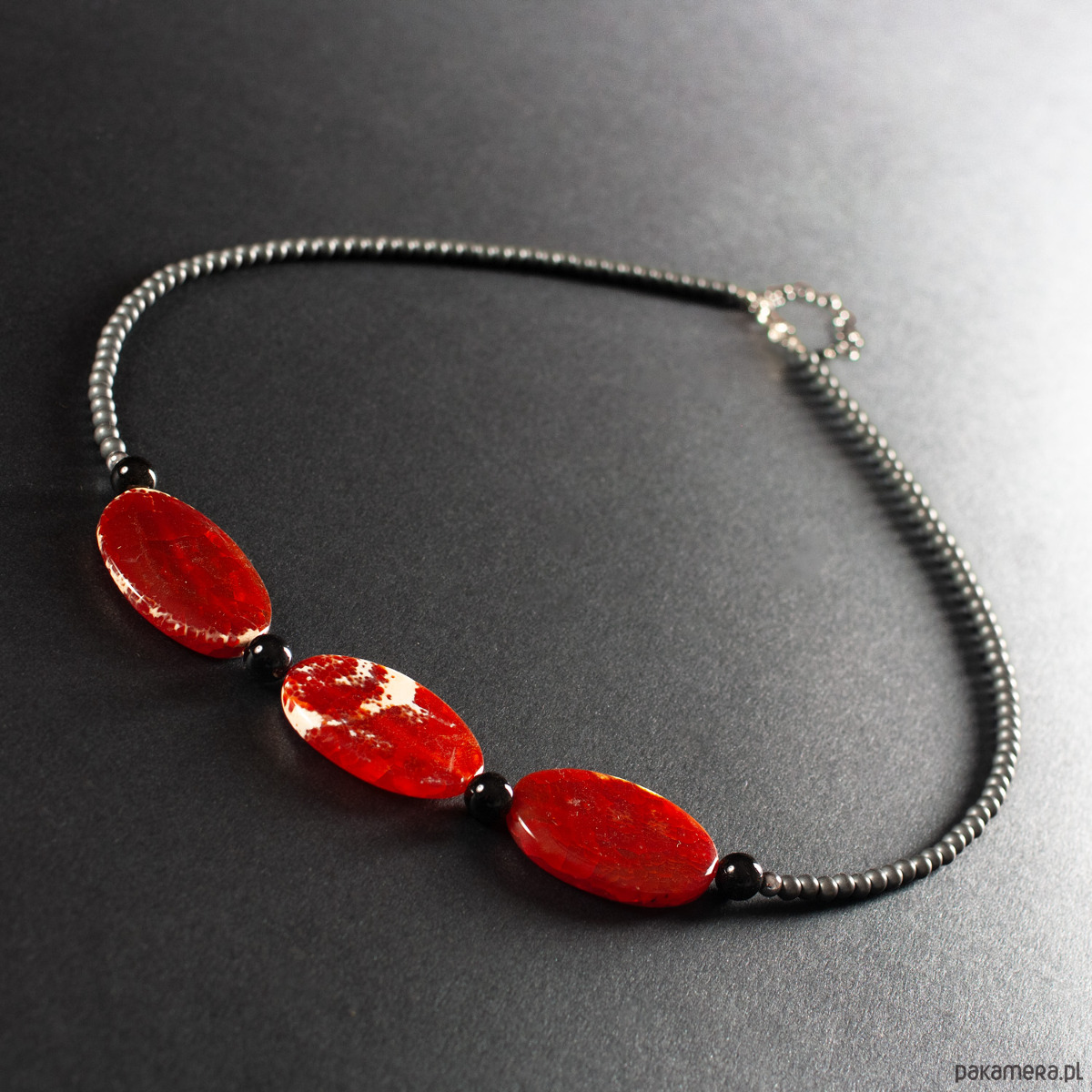 Naszyjnik z agatem, onyksem i hematytem. [SN17]