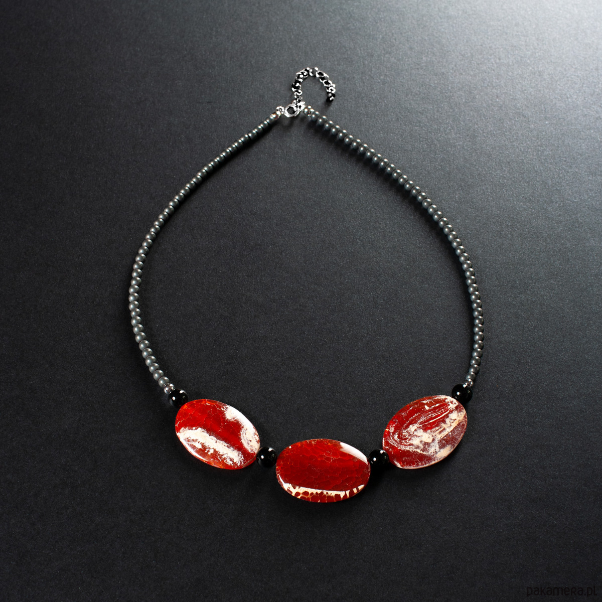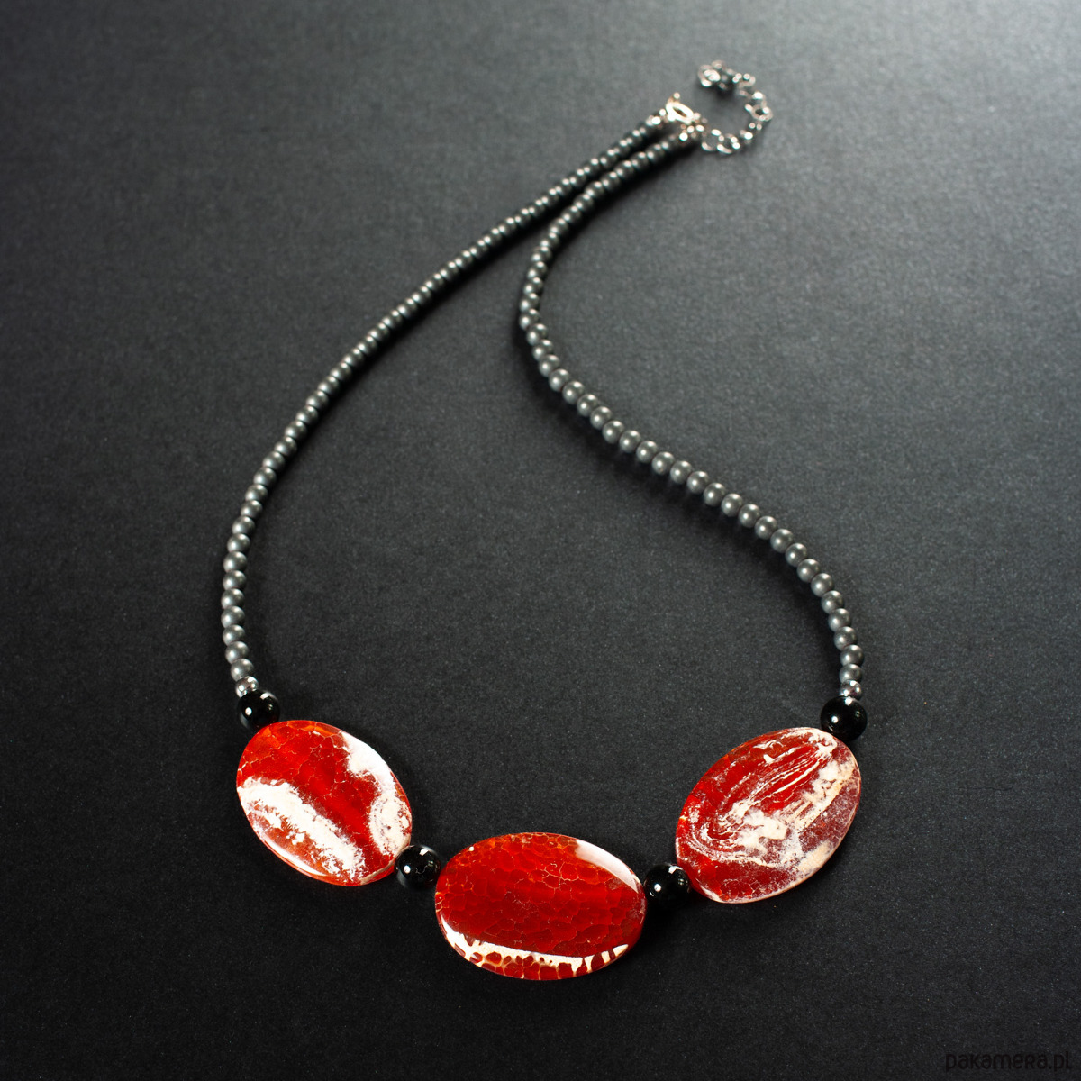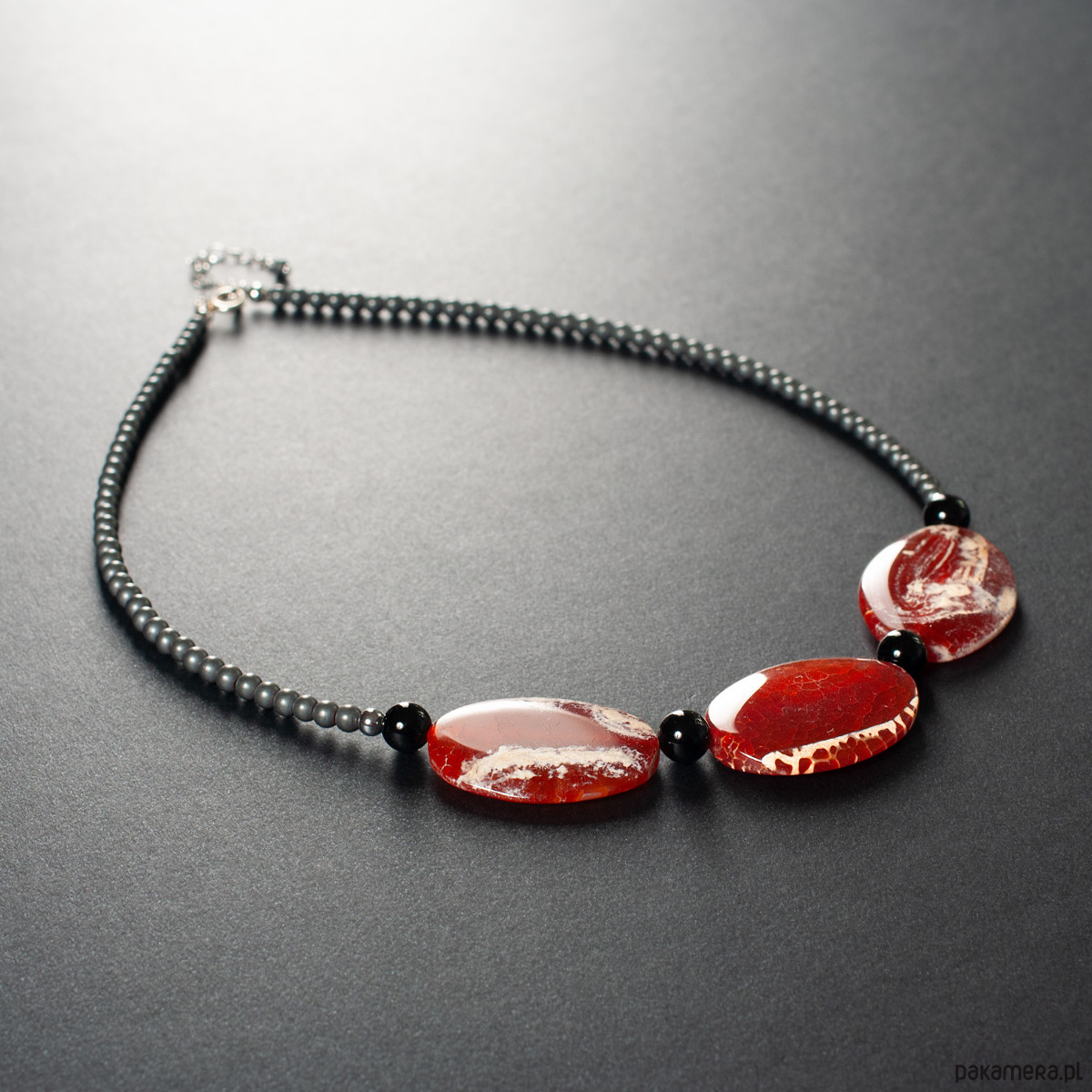 Naszyjnik z agatem, onyksem i hematytem. [SN17]
