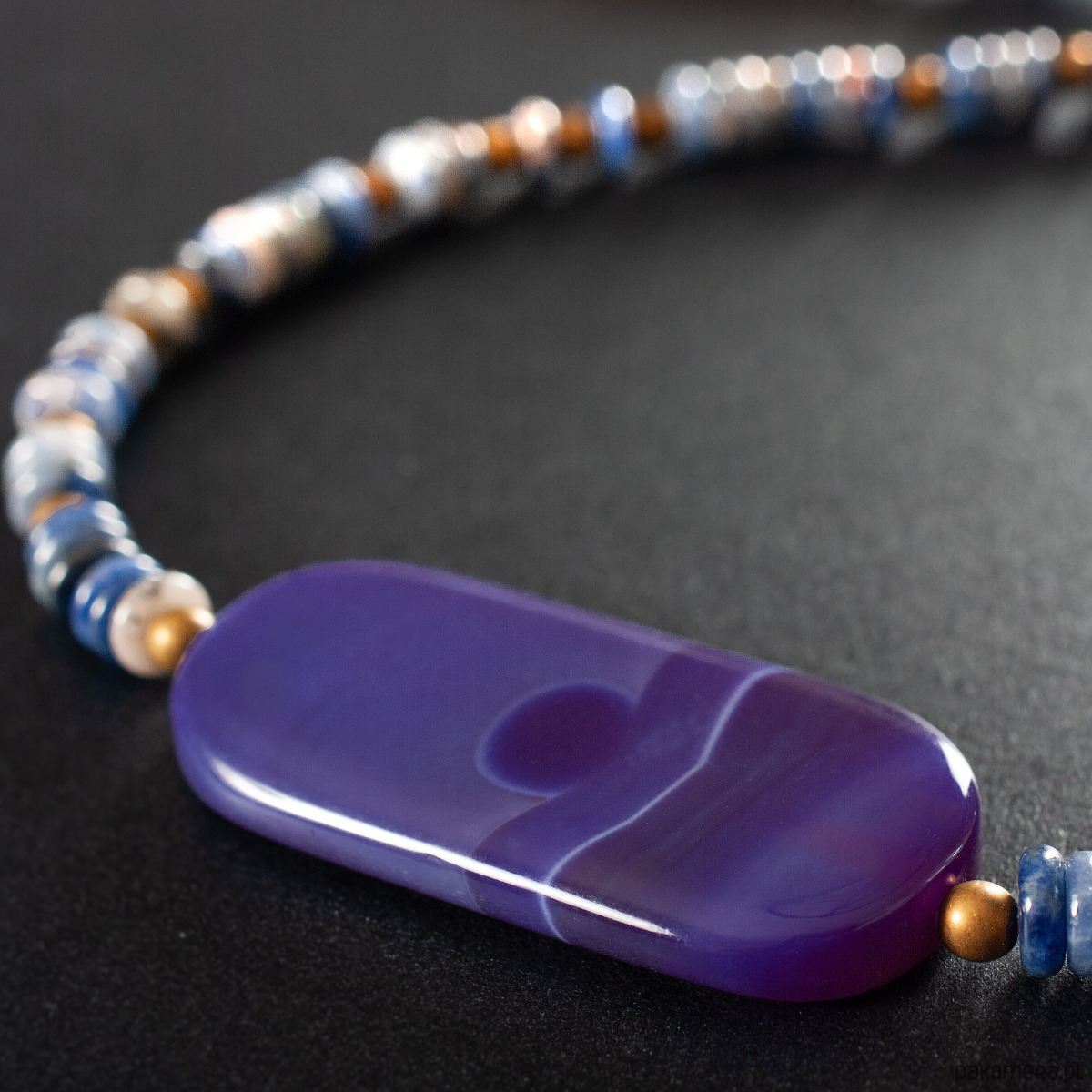 Naszyjnik z agatem, sodalitem i hematytem. [SN16]