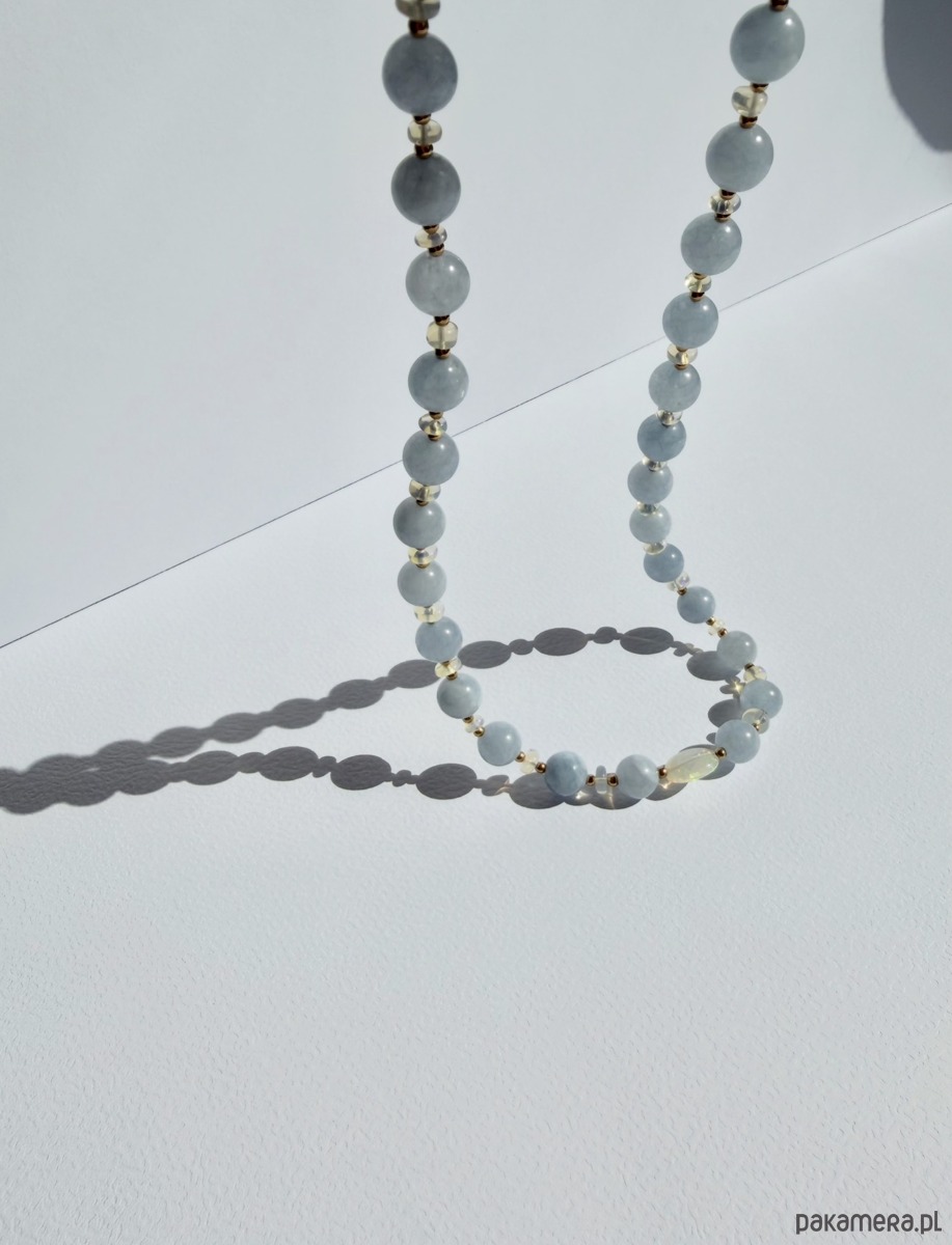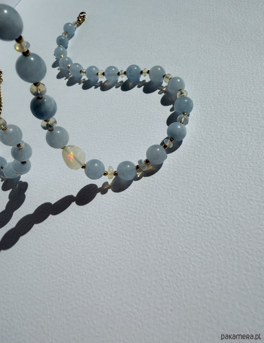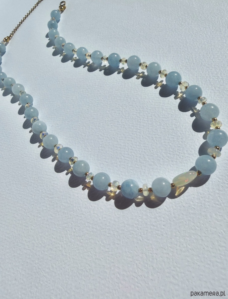 Naszyjnik z akwamarynem, opalem etiopskim i hematytem.
