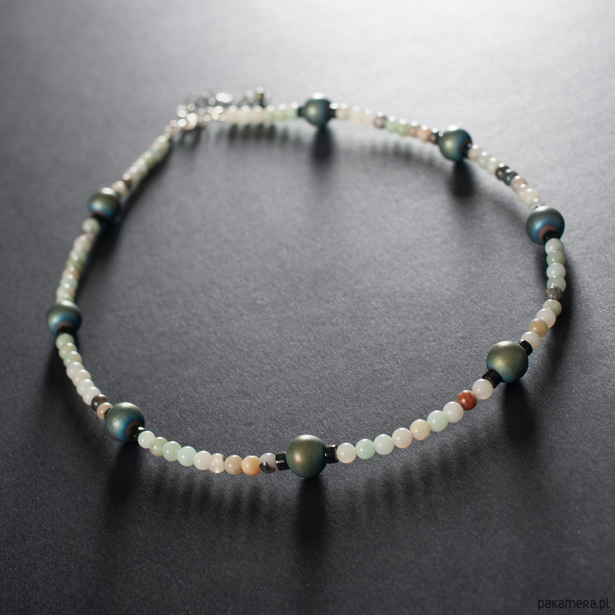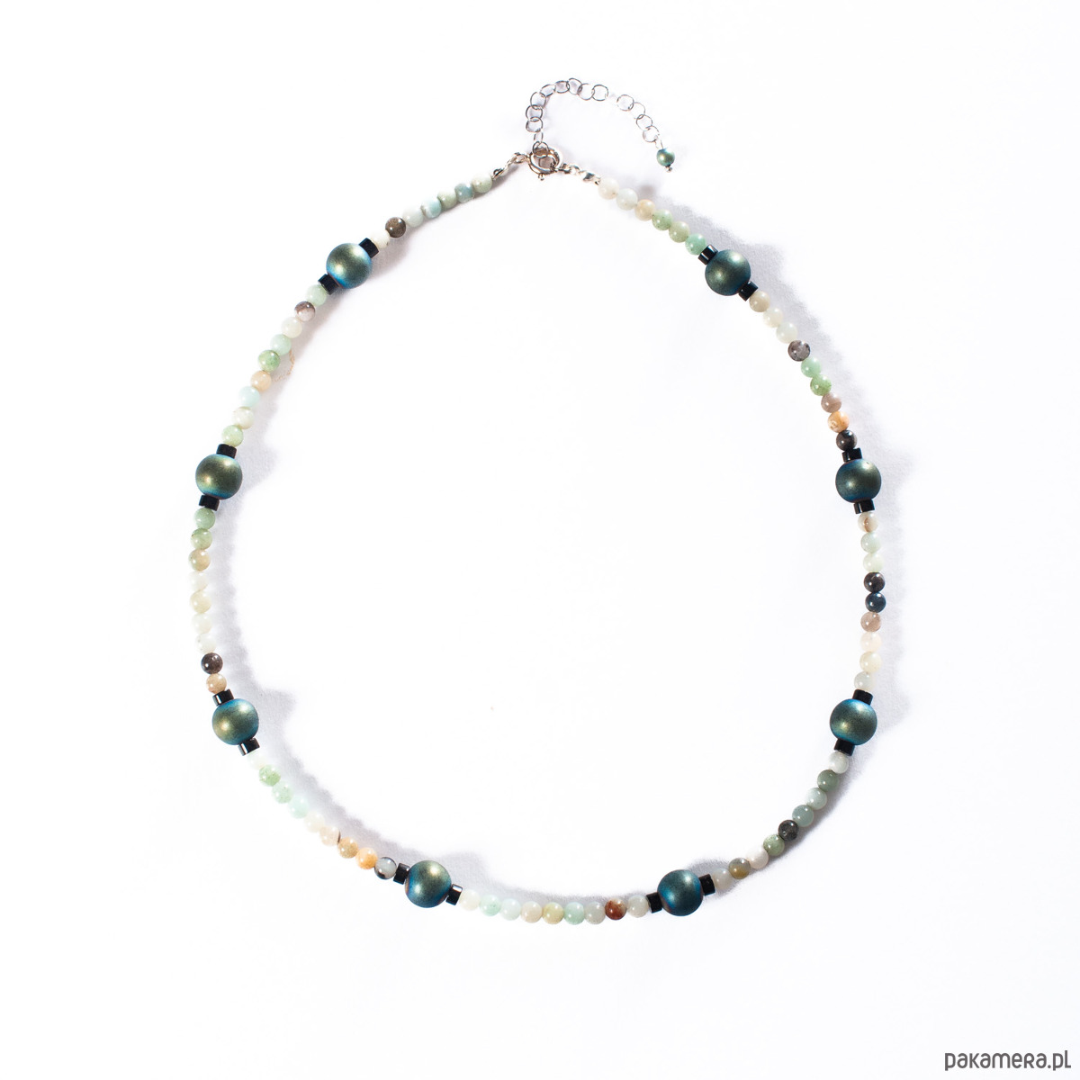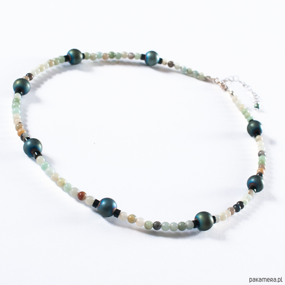 Naszyjnik z amazonitem, onyksem i hematytem. [ŁN14]