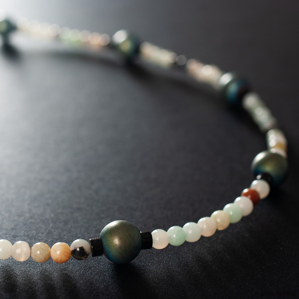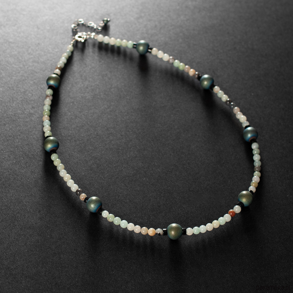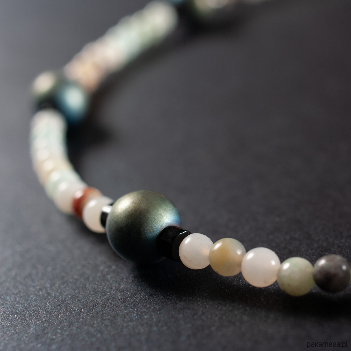 Naszyjnik z amazonitem, onyksem i hematytem. [ŁN14]