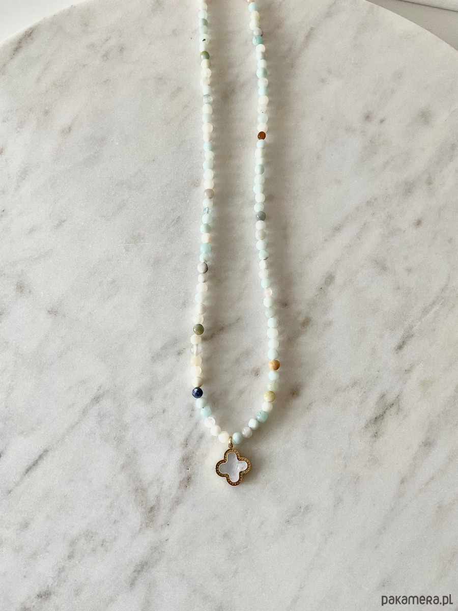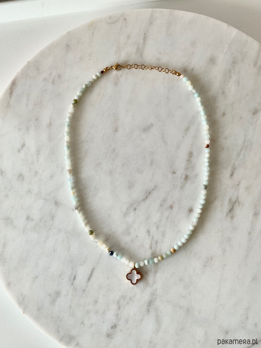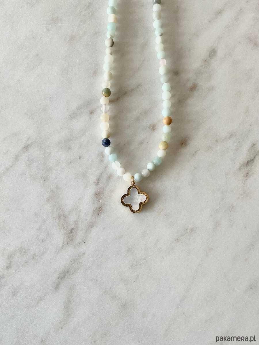 Naszyjnik z amazonitu z zawieszką w kształcie marokańskiej koniczyny