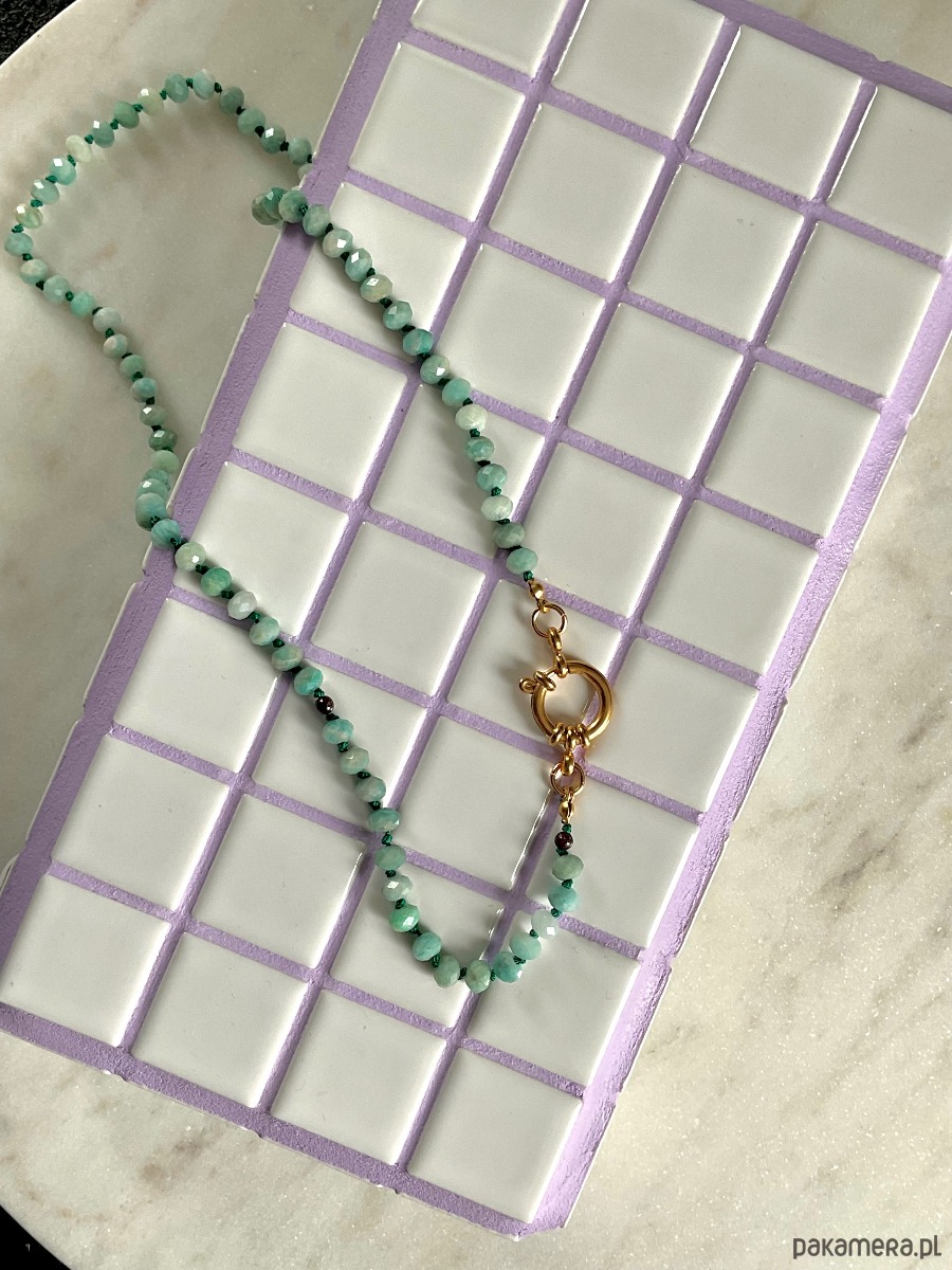 Naszyjnik z amazonitu z pierścieniowym zapięciem.