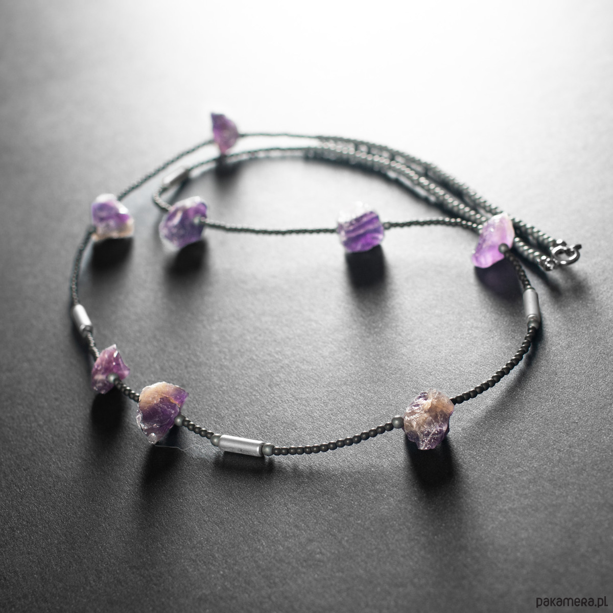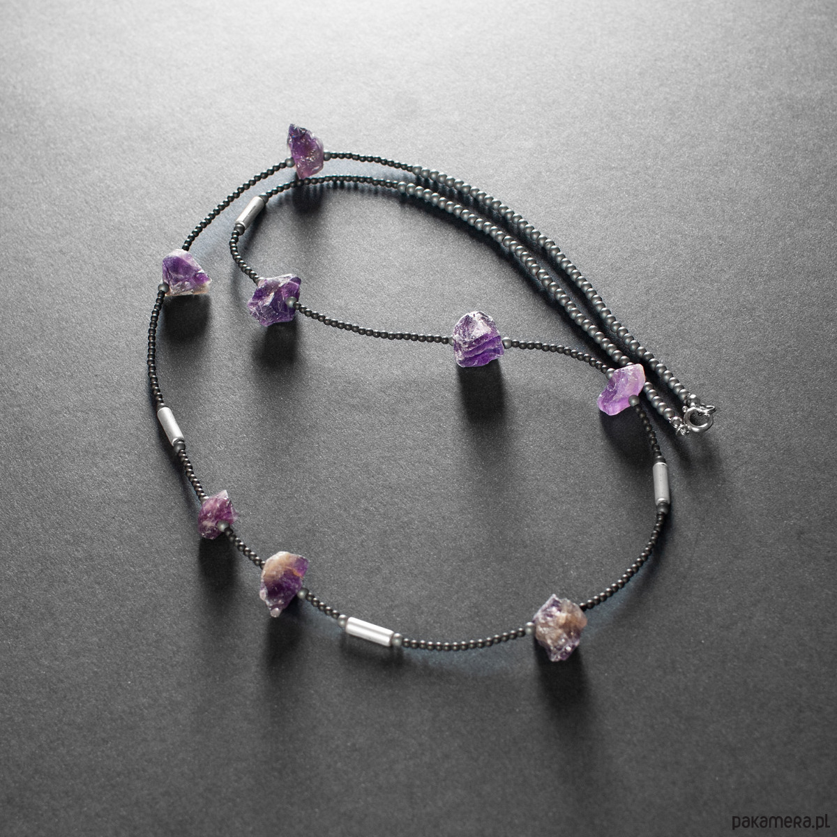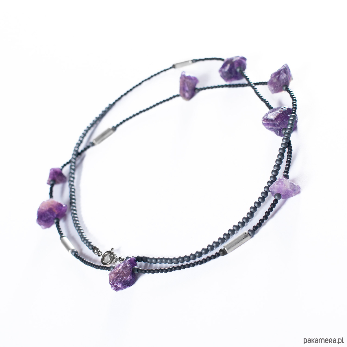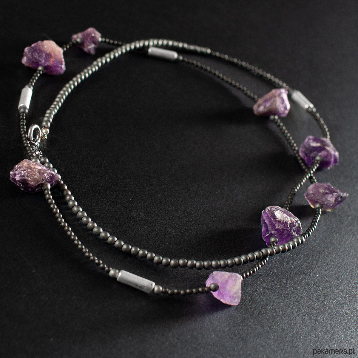 Naszyjnik z ametystem i hematytem. [SN21]