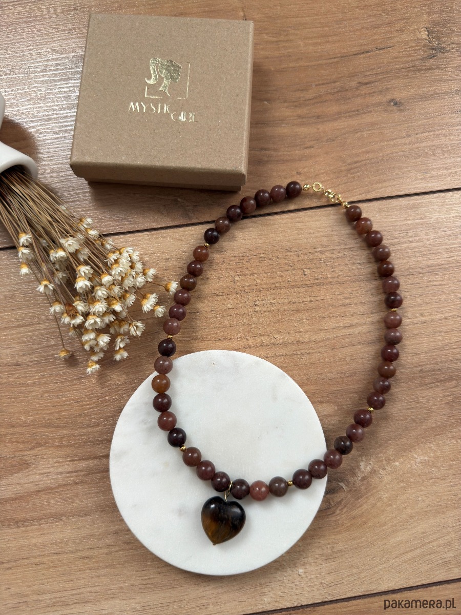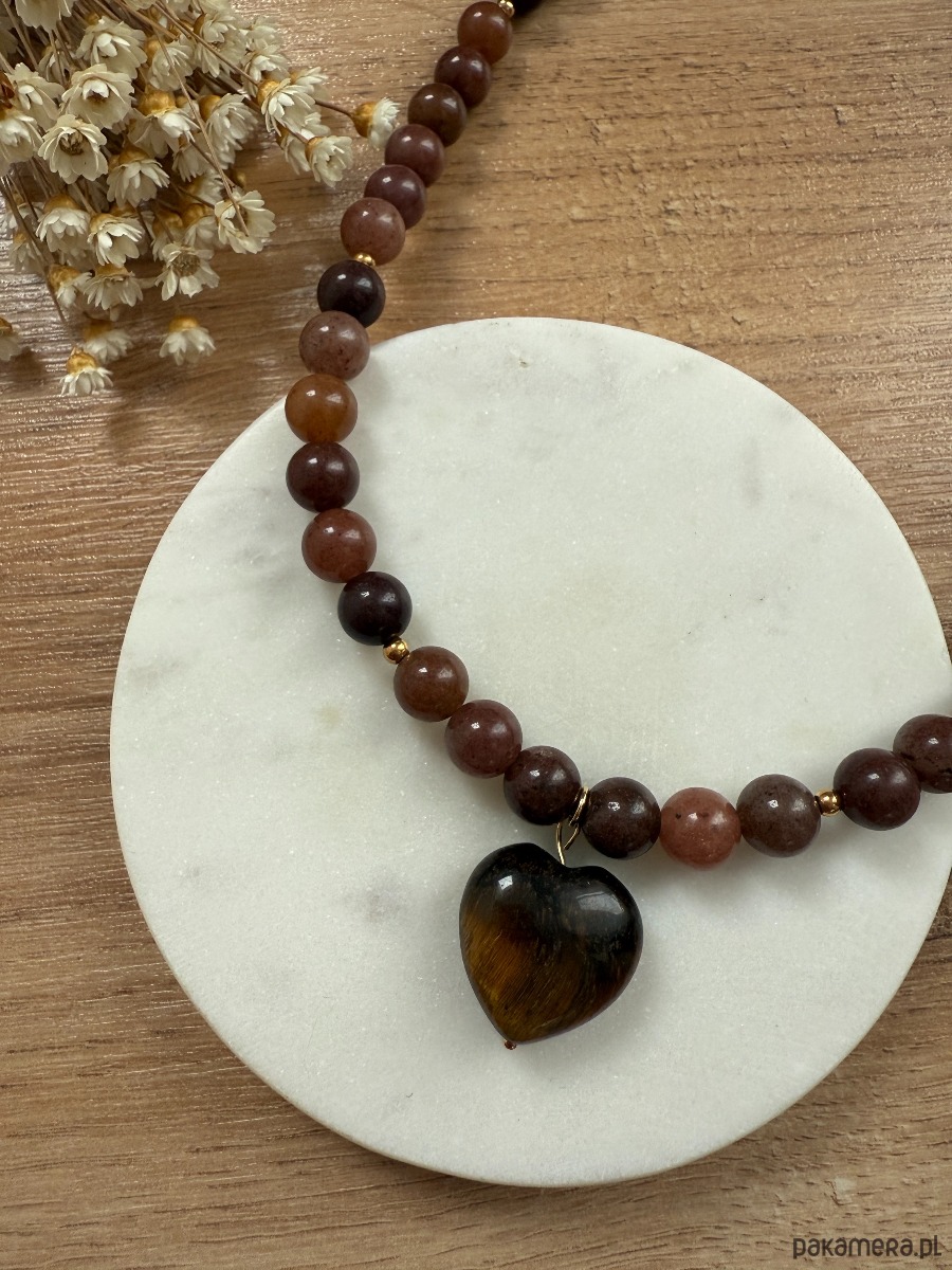 Naszyjnik brązowy z awenturynu z sercem z tygrysiego oka