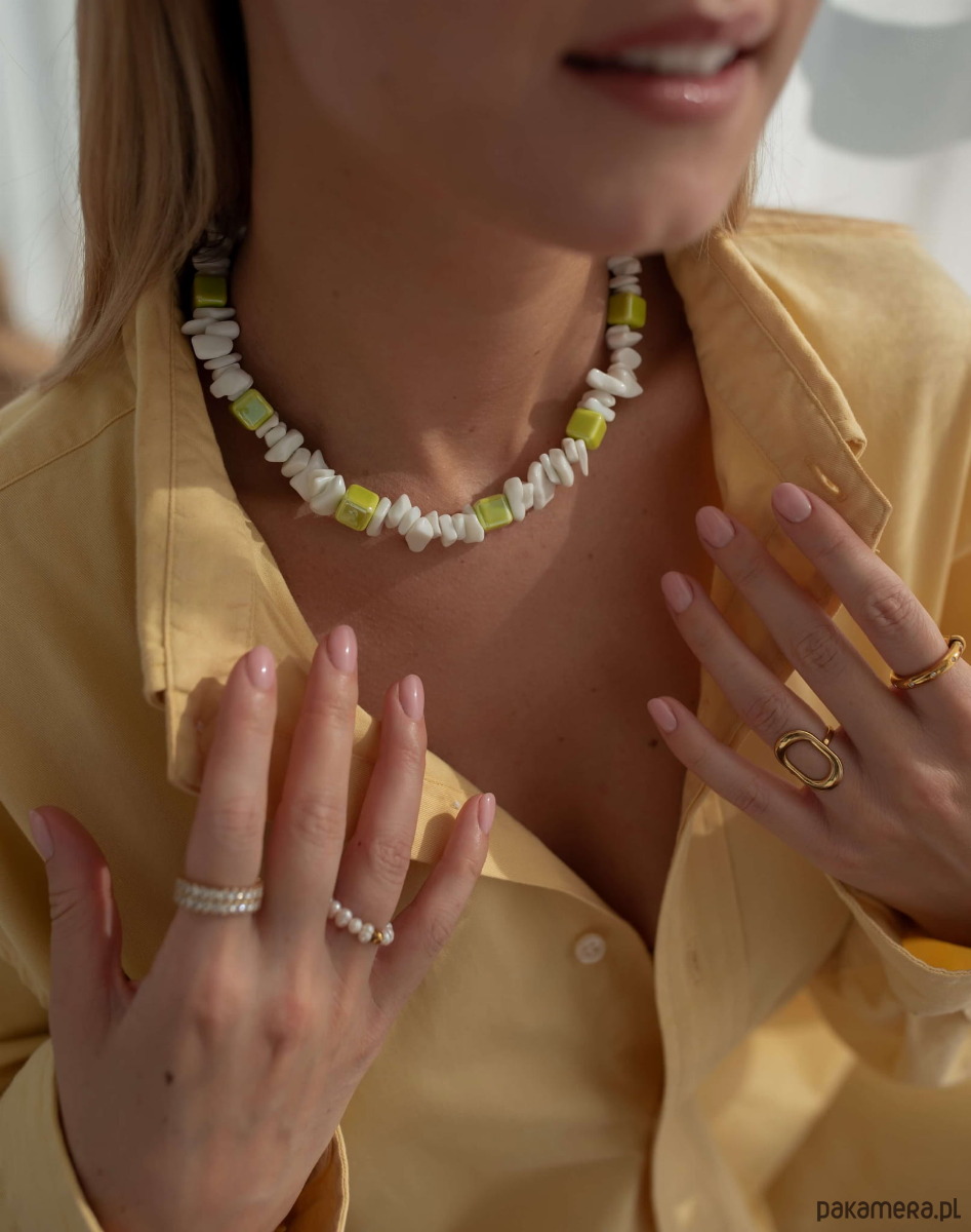 Naszyjnik z białego agatu z limonkowymi akcentami