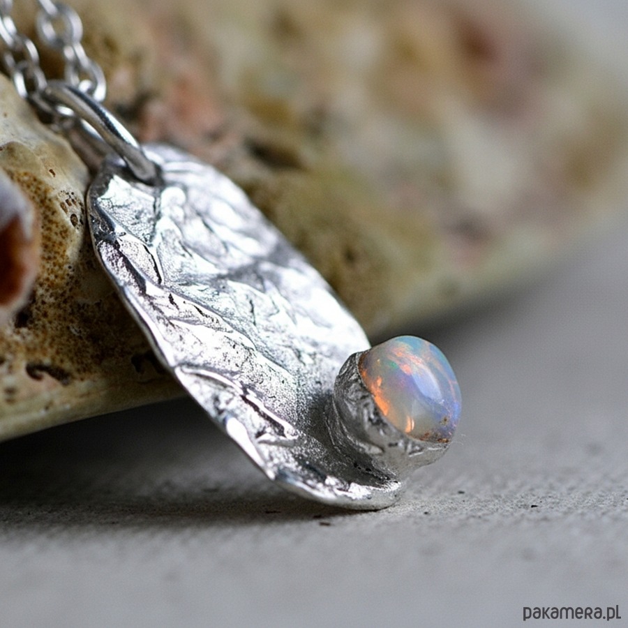 Biały opal charakteryzuje się mlecznobiałą barwą z subtelnymi odcieniami kolorów tęczy. Jest to efekt tzw. iryzacji, która sprawia, że opal mieni się różnymi kolorami w zależności od kąta padania światła. Dzięki temu każdy kamień jest unikalny, co dodaje biżuterii wyjątkowości.