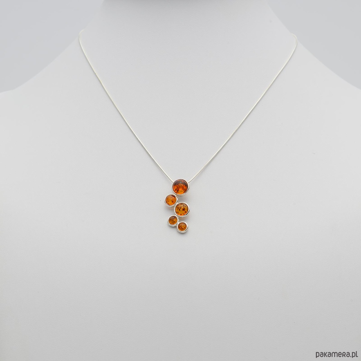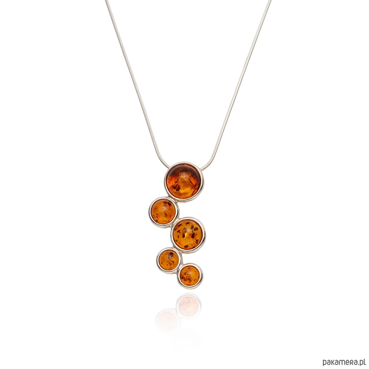 Wyjątkowy naszyjnik, który zachwyca oryginalnym połączeniem klasycznego srebra z naturalnym bursztynem w kolorze koniakowym.