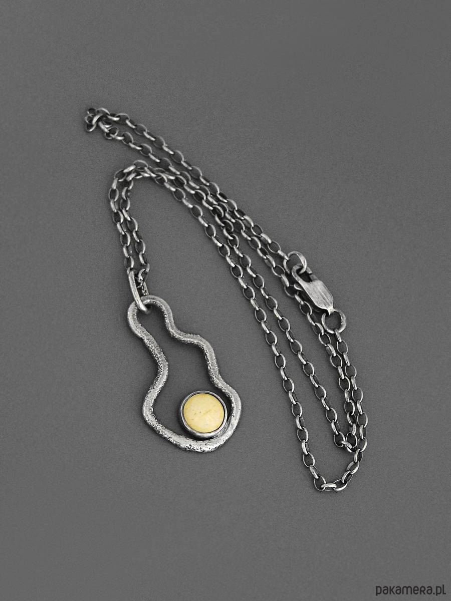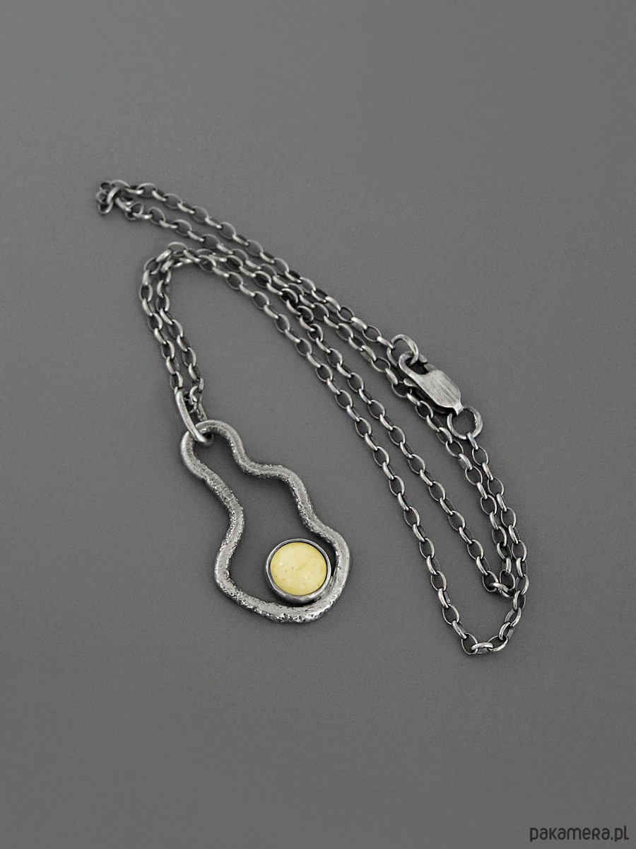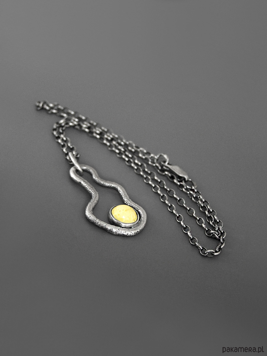 Unikatowy naszyjnik o nieregularnym, falistym kształcie, wykonany ze srebra 925.