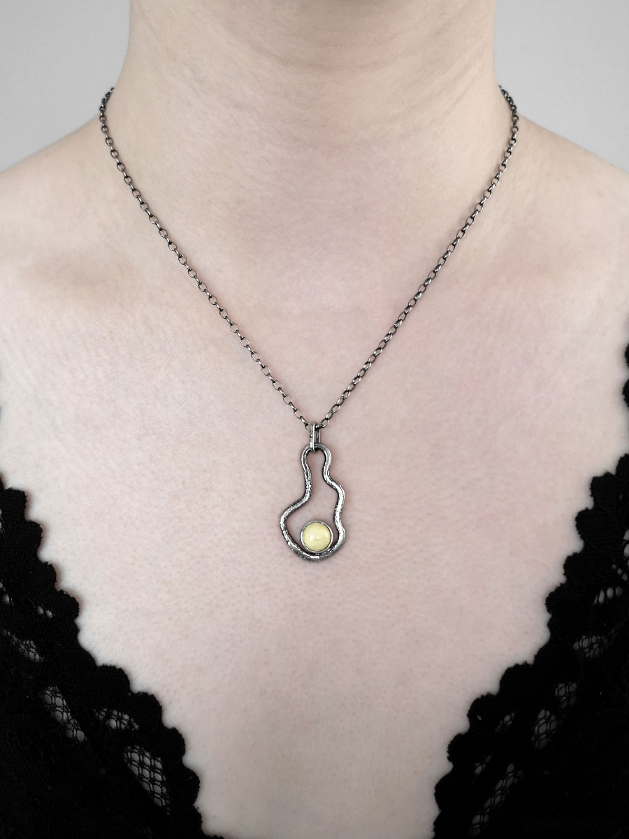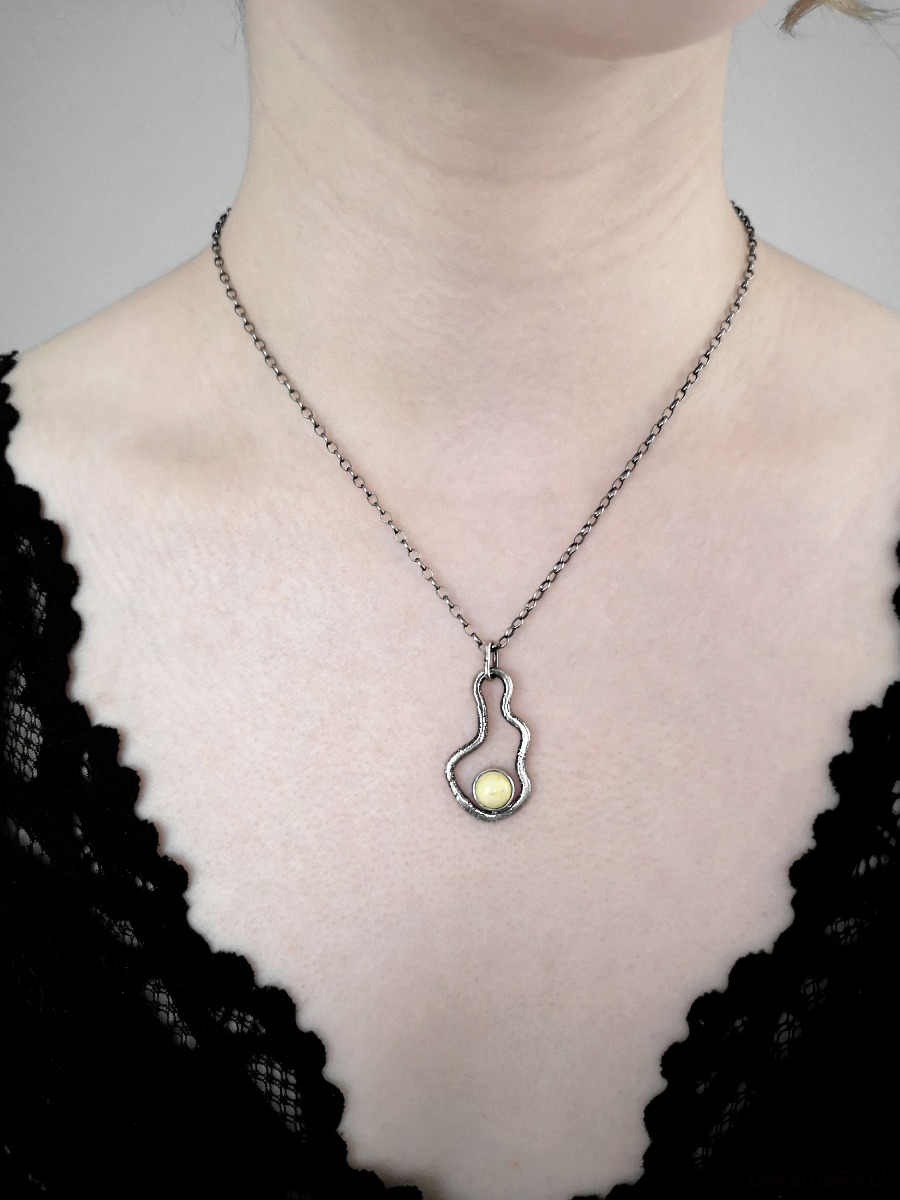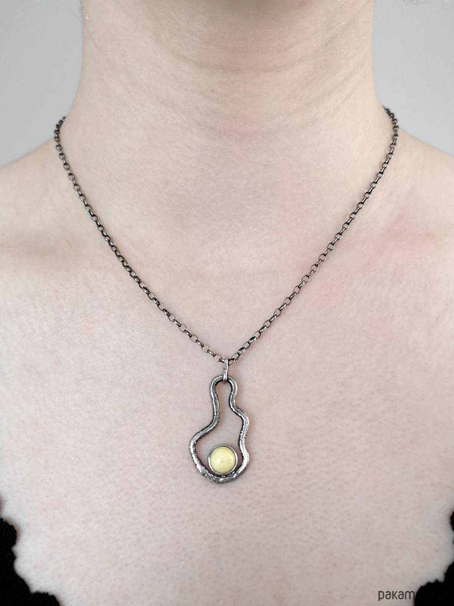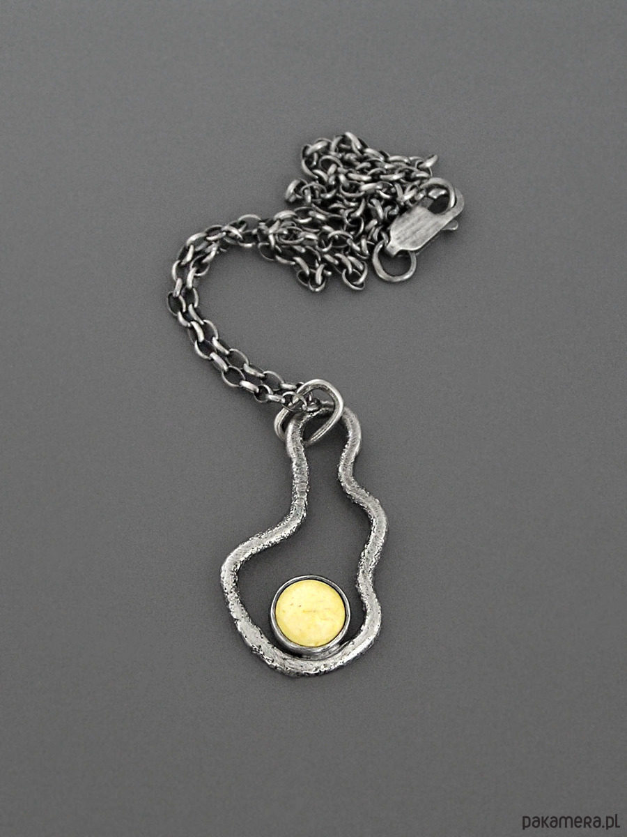 Unikatowy naszyjnik o nieregularnym, falistym kształcie, wykonany ze srebra 925.
