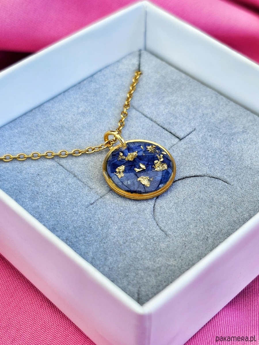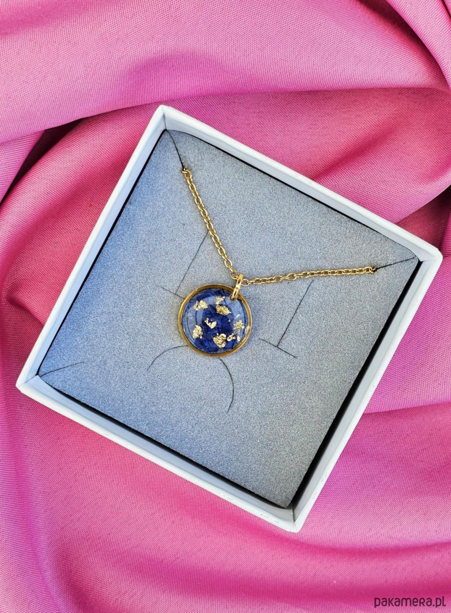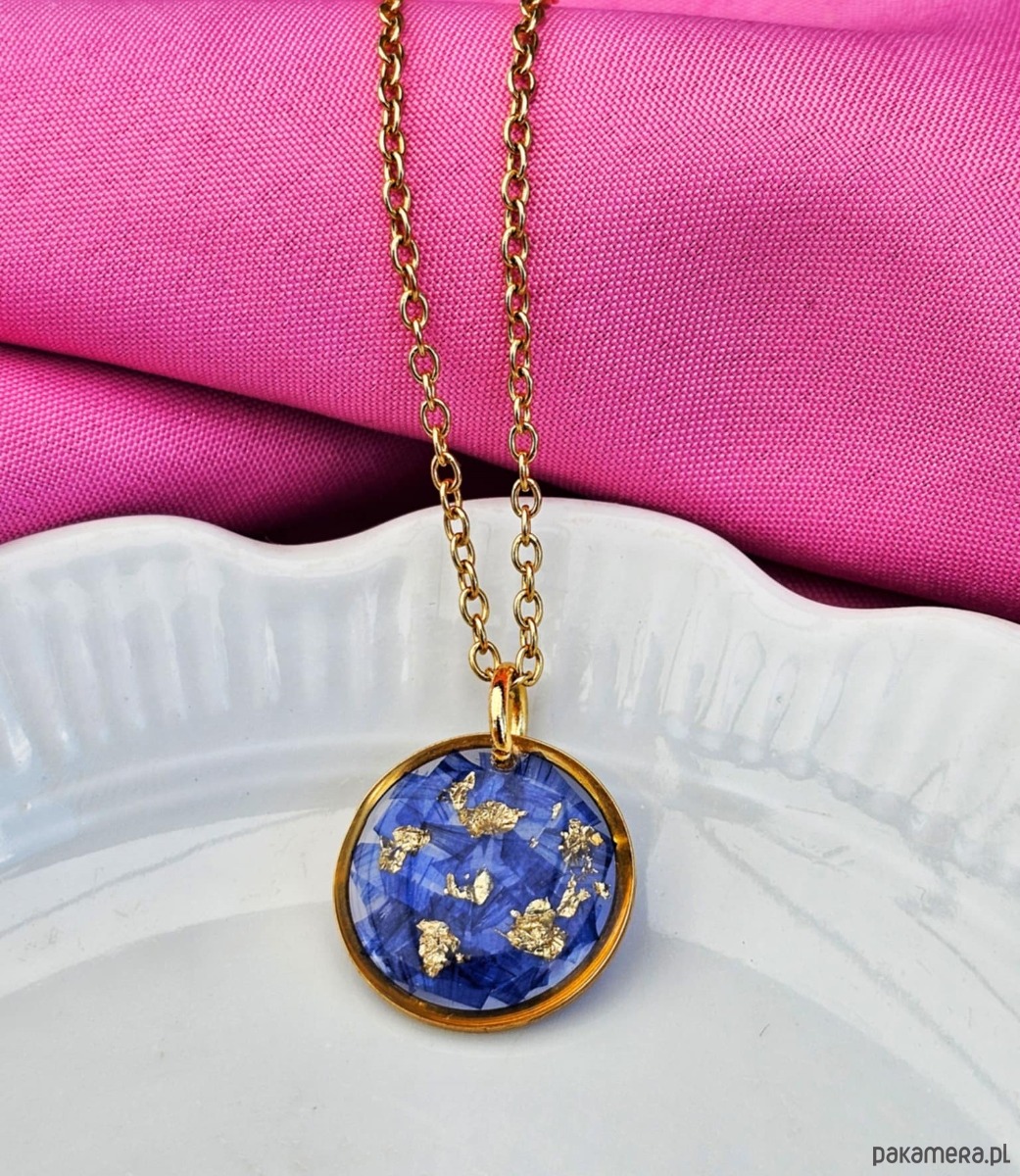 Naszyjnik z płatkami suszonego chabru to unikatowa, ręcznie wykonana biżuteria z serii Wolność.