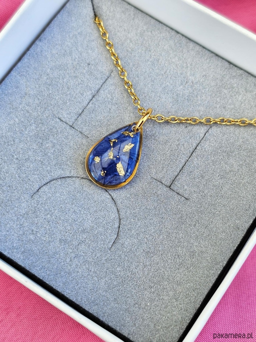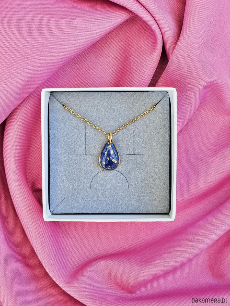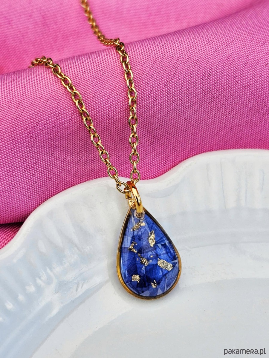 Naszyjnik z płatkami suszonego chabru to unikatowa, ręcznie wykonana biżuteria z serii Wolność.