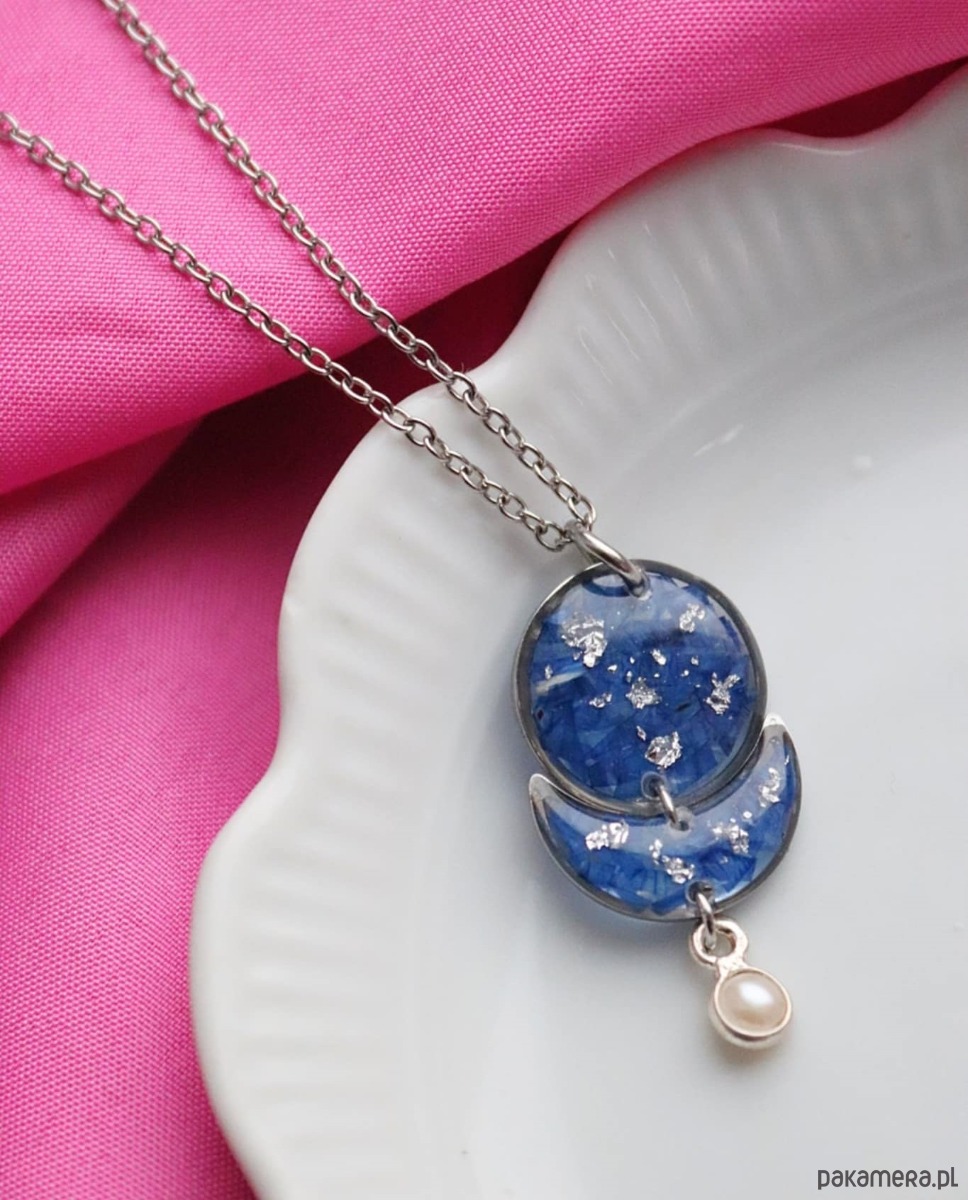 Naszyjnik z płatkami suszonego chabru to unikatowa, ręcznie wykonana biżuteria z serii Wolność.