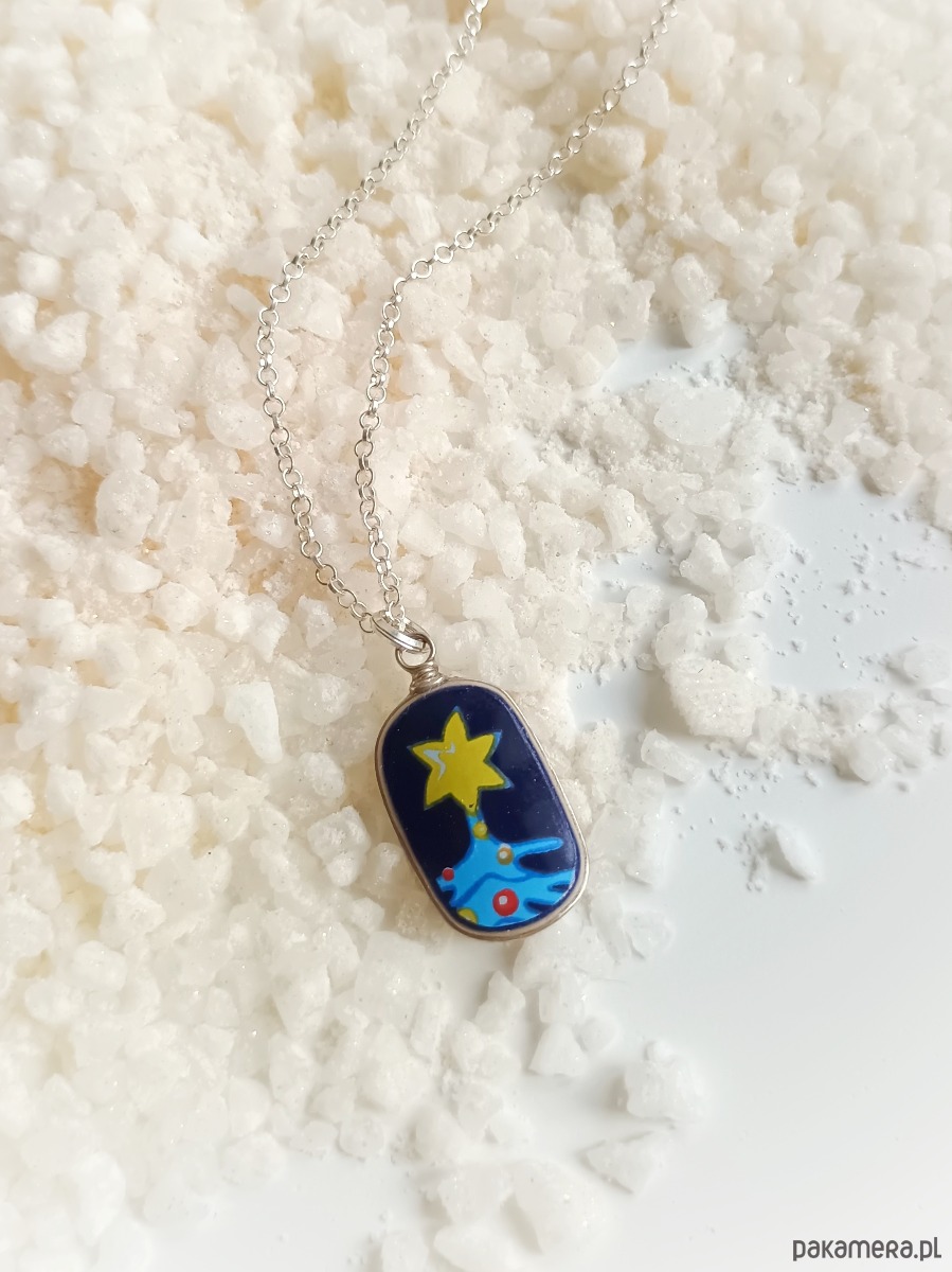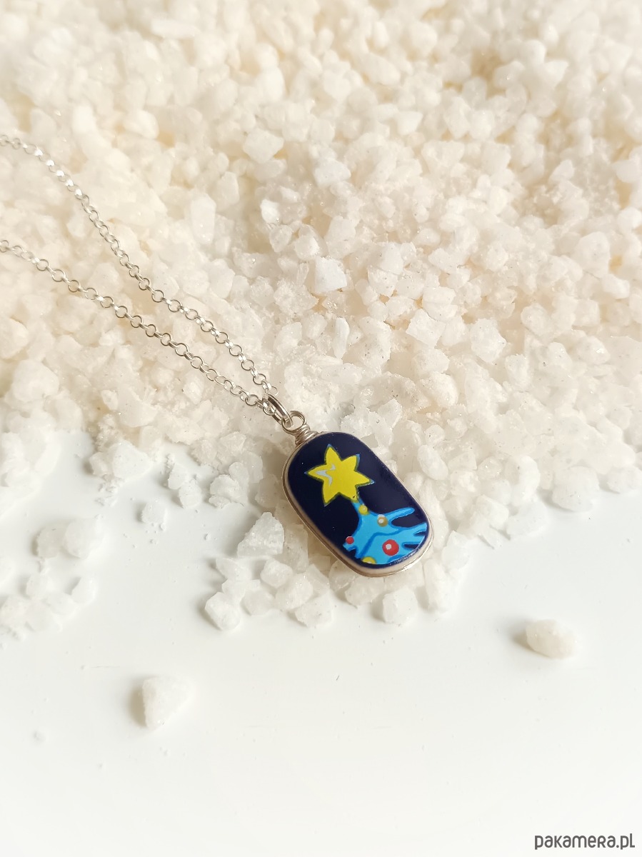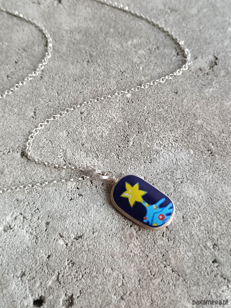 Oto naszyjnik, który wykonałam z fragmentu stłuczonej filiżanki świątecznej. Kawałek stłuczki oszlifowałam nadając owalny kształt, oprawiłam w drucik i zamocowałam na srebrnym łańcuszku (srebro 925). Ceramikę zeszlifowałam również z grubości - jest cieńsza niż pierwotnie, dzięki czemu zawieszka nie jest masywna. Brzegi i tył pokryłam lakierem, co sprawia, że nie brudzą się i nie chłoną wilgoci. Wymiary zawieszki ceramicznej: 12 x 18 mm. Długość łańcuszka w całości: 45 cm. Unikat - każdy z moich wyrobów występuje w jednym egzemplarzu. Upcykling - nie reprodukuję wykorzystywanych wzorów, niczego nie domalowuję - wykorzystuję wyłącznie oryginalne naczynia i motywy, które się na nich znajdują. Tym samym, stłuczce z odzysku nadaję nowe życie.