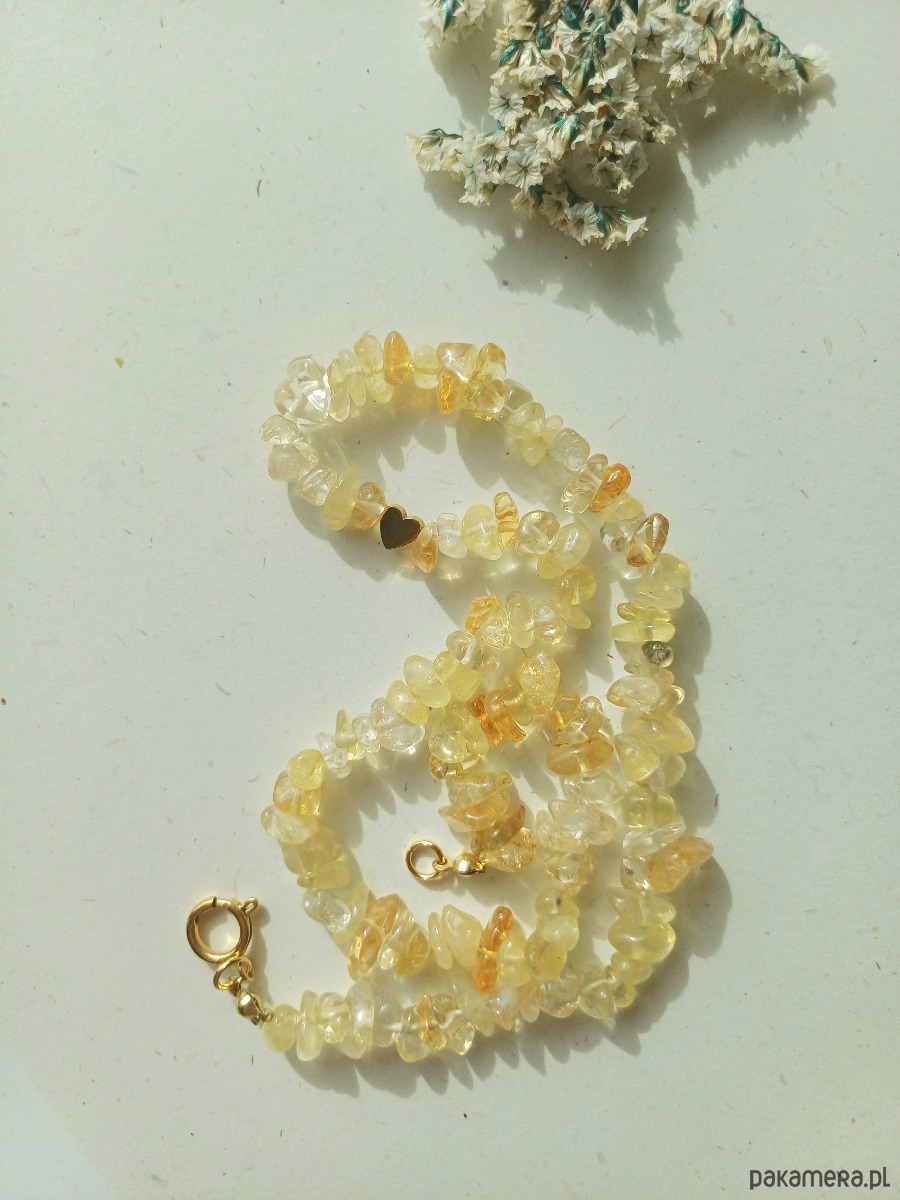 Elementy : cytryn : 4 mm, cytryn wiórki : 5 -10 mm, zapięcie: stal szlachetna