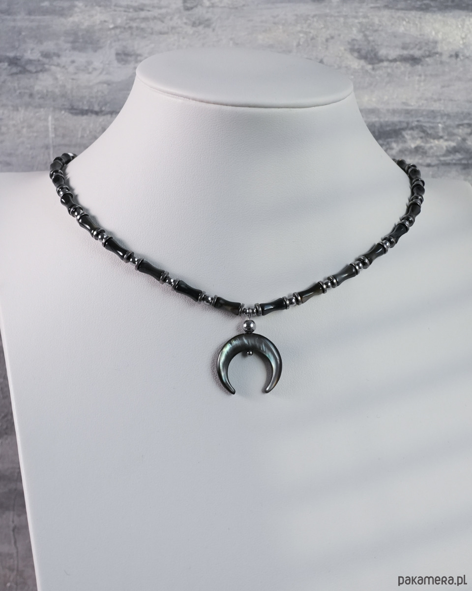 Naszyjnik z czarnej masy perłowej z LUNULĄ