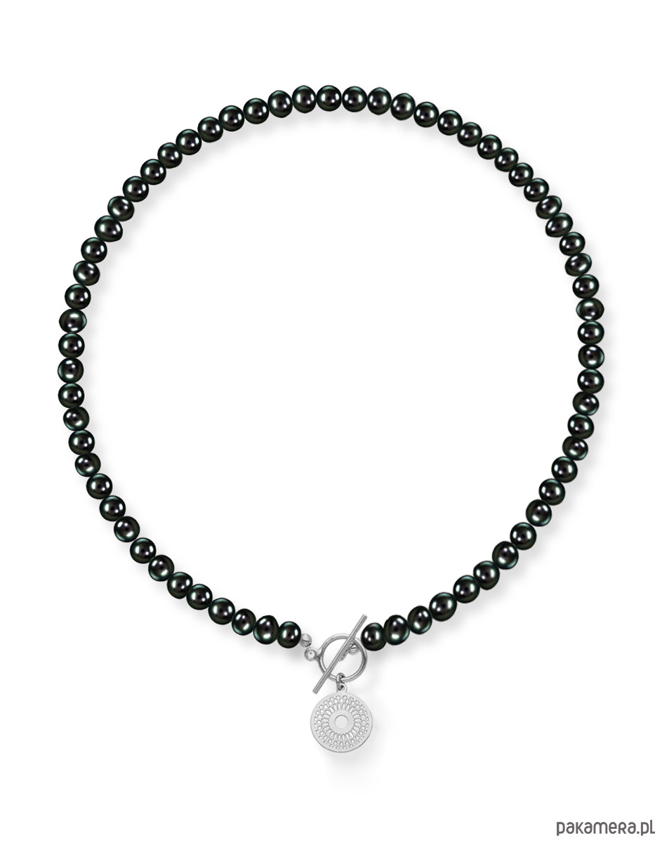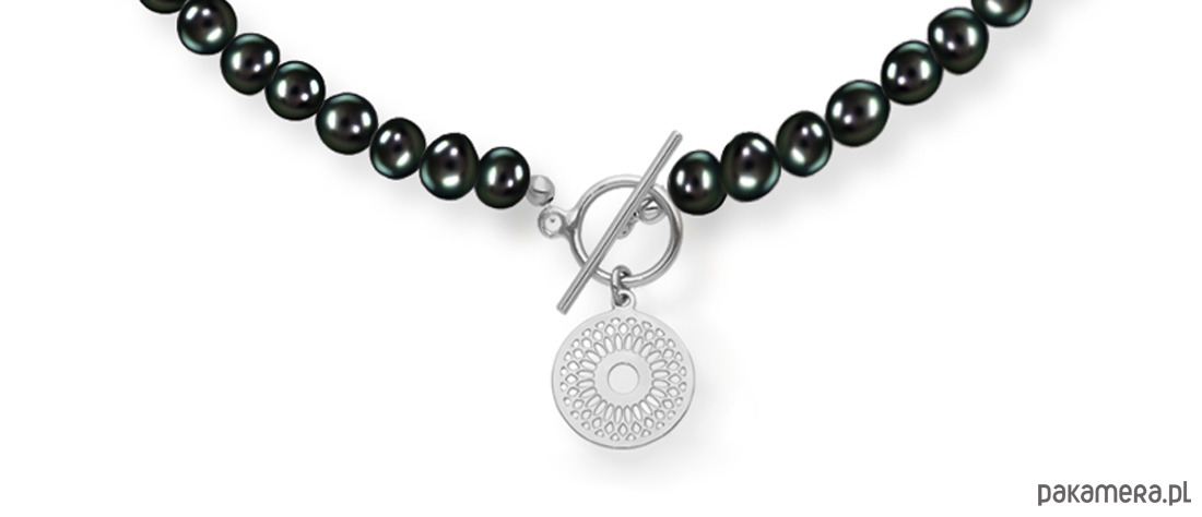 Naszyjnik z czarnych pereł naturalnych z ażurowym kółkiem