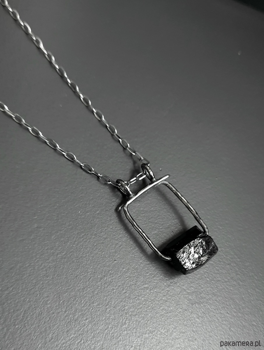 Naszyjnik jest surowy, prosty, czarujący. Sercem jest czarny turmalin - silny kamień ochronny. Blokuje on złe energie, uroki, zaprowadza harmonię wewnętrzną, intensywnie wpływa na kreatywność.