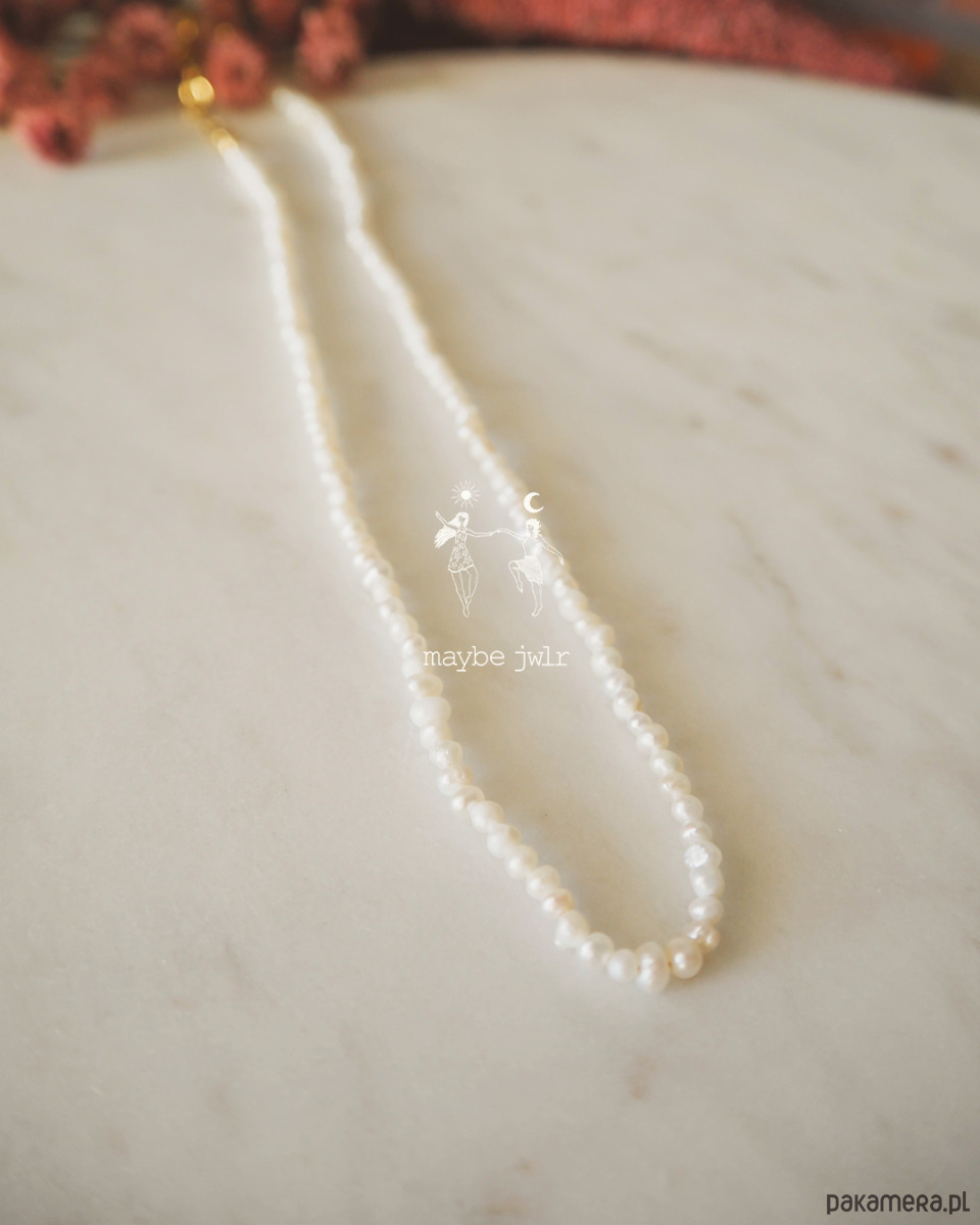 Elegancki naszyjnik z drobnych, nieregularnych pereł słodkowodnych (3–4 mm) to ponadczasowy dodatek, który podkreśla kobiecą subtelność i naturalny urok. Ręcznie nawleczone perły na delikatnej jedwabnej nici nadają biżuterii wyjątkowego charakteru i sprawiają, że każda sztuka jest niepowtarzalna.