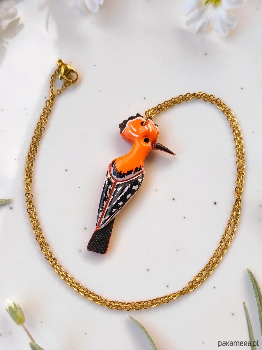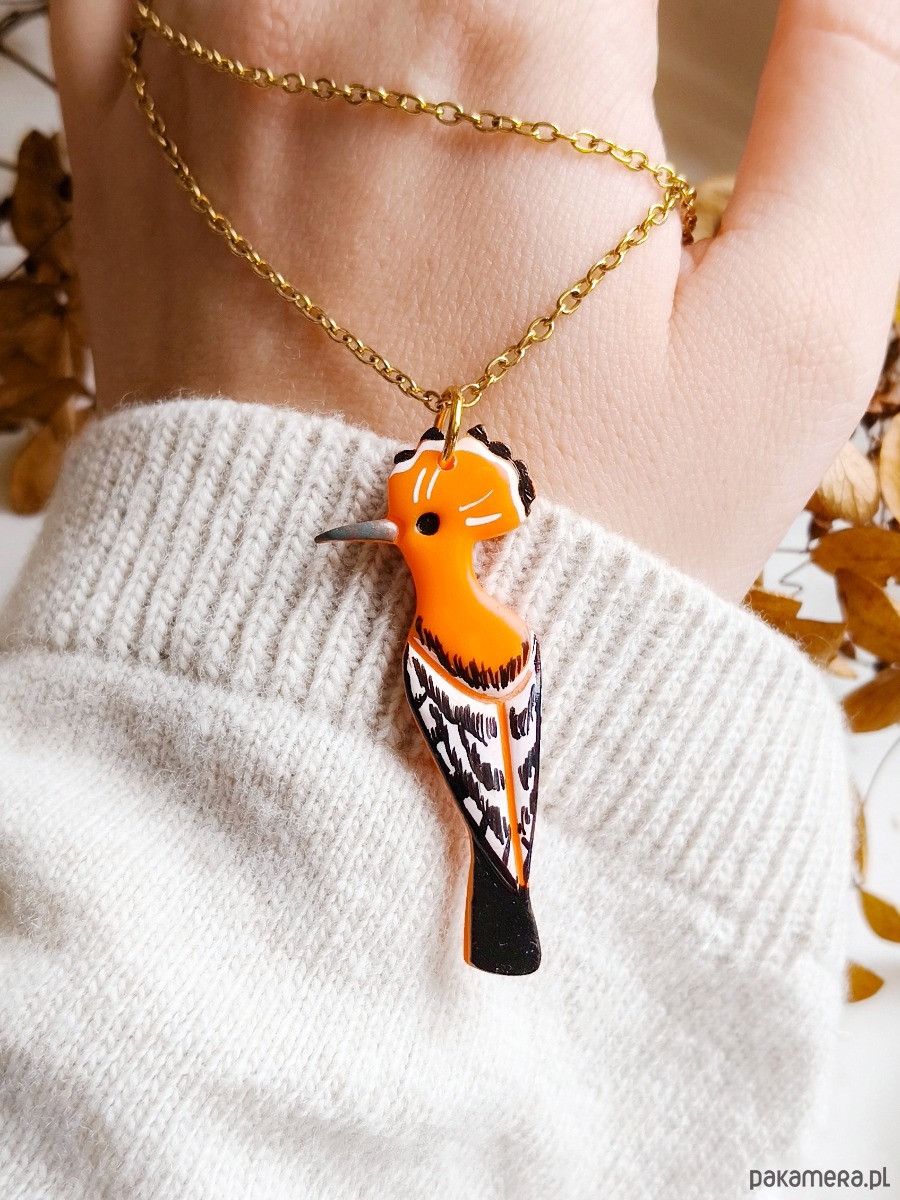 Naszyjnik z dudkiem, biżuteria z ptakiem, prezent dla miłośnika lasu