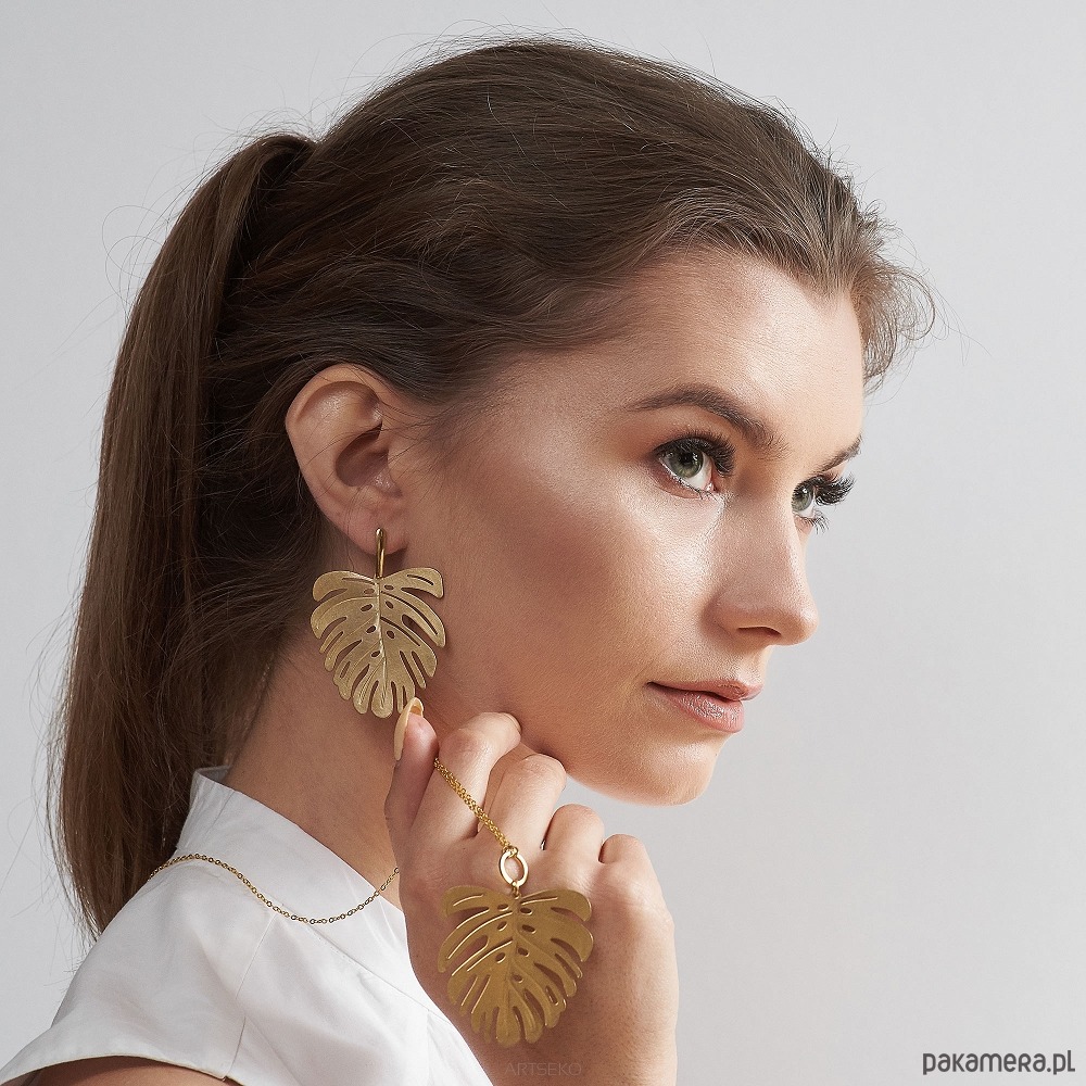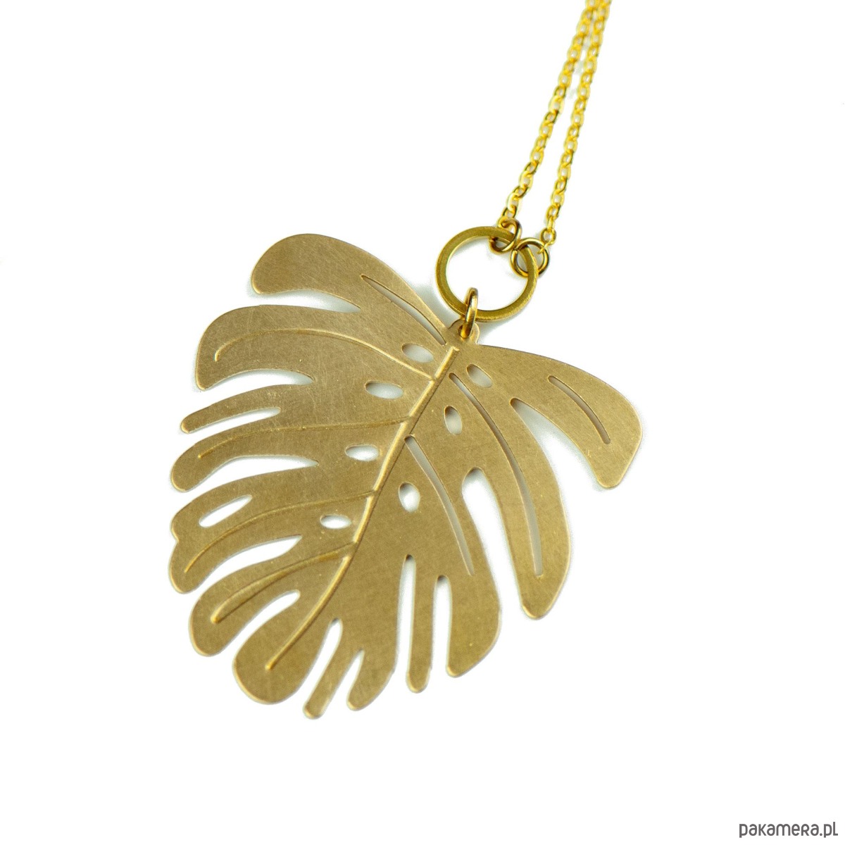 Naszyjnik z zawieszką w kształcie liścia monstery to nowoczesna propozycja dla miłośniczek wyrazistej, naturalnej formy. Złocisty odcień mosiądzu podkreśla subtelne detale roślinnego motywu, tworząc efektowny akcent biżuteryjny. Zawieszka wykonana jest z mosiądzu wolnego od niklu, kadmu i ołowiu, dzięki czemu jest bezpieczna dla skóry. To uniwersalny dodatek, który dopełni zarówno casualowe stylizacje, jak i wieczorne zestawy - świetny wybór także na prezent.