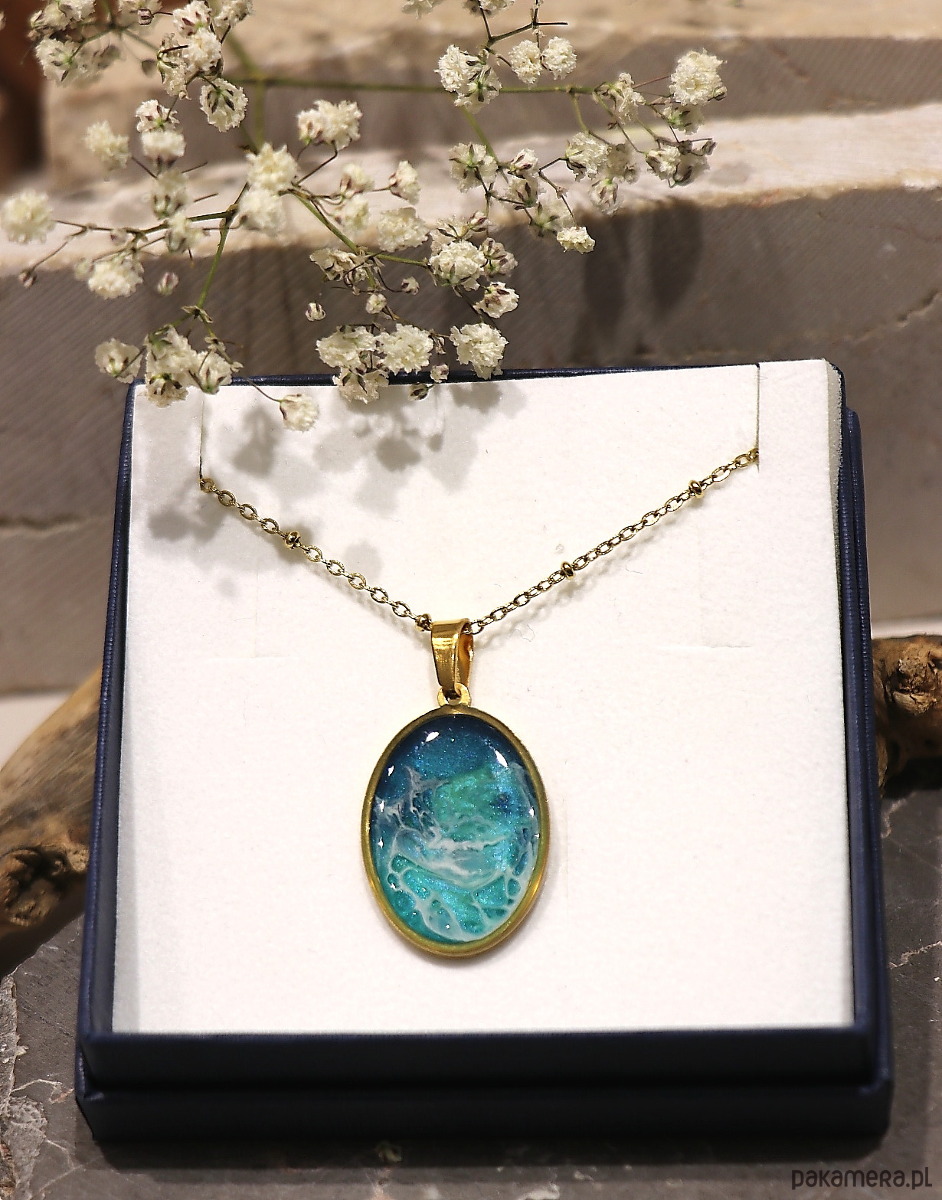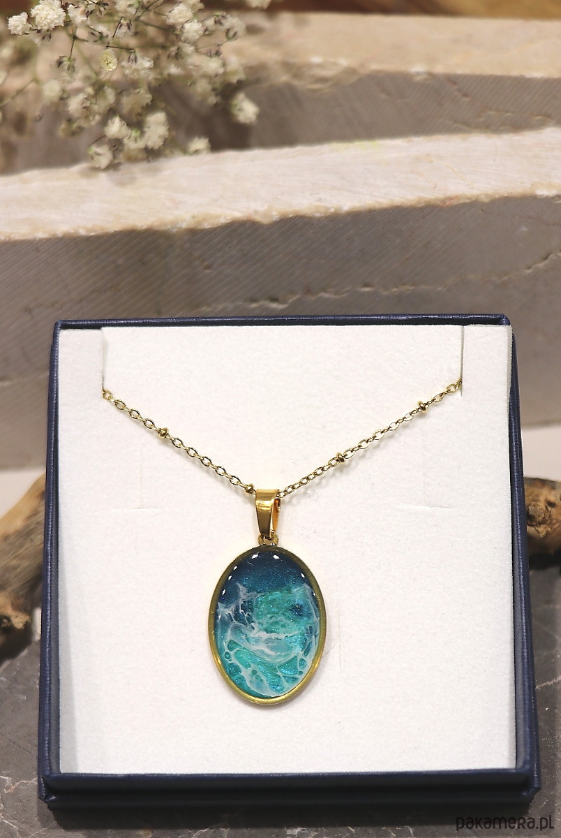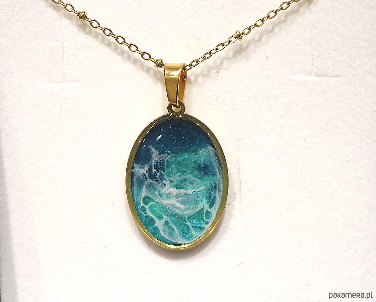 Ręcznie robiony naszyjnik z motywem morskiej fali.