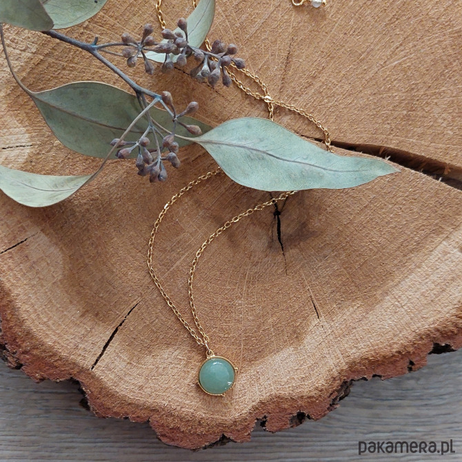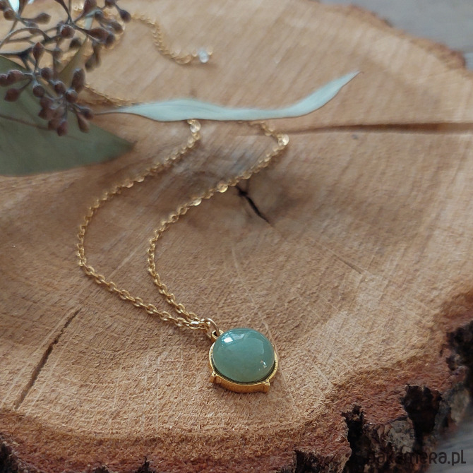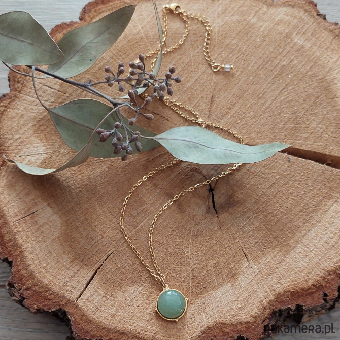 Delikatny naszyjnik w stylu vintage - łączy w sobie prosty łańcuszek i okrągły, zielony fluoryt w uroczej oprawie. Wzbogacony łańcuszkiem regulacyjnym, który nie tylko daje swobodę w ustawieniach długości naszyjnika, ale też pełni funkcję dekoracyjną. Zakończenie łańcuszka regulacyjnego przyozdobione zostało połyskującym, fasetowanym fluorytem o delikatnym, jasnozielonym zabarwieniu.