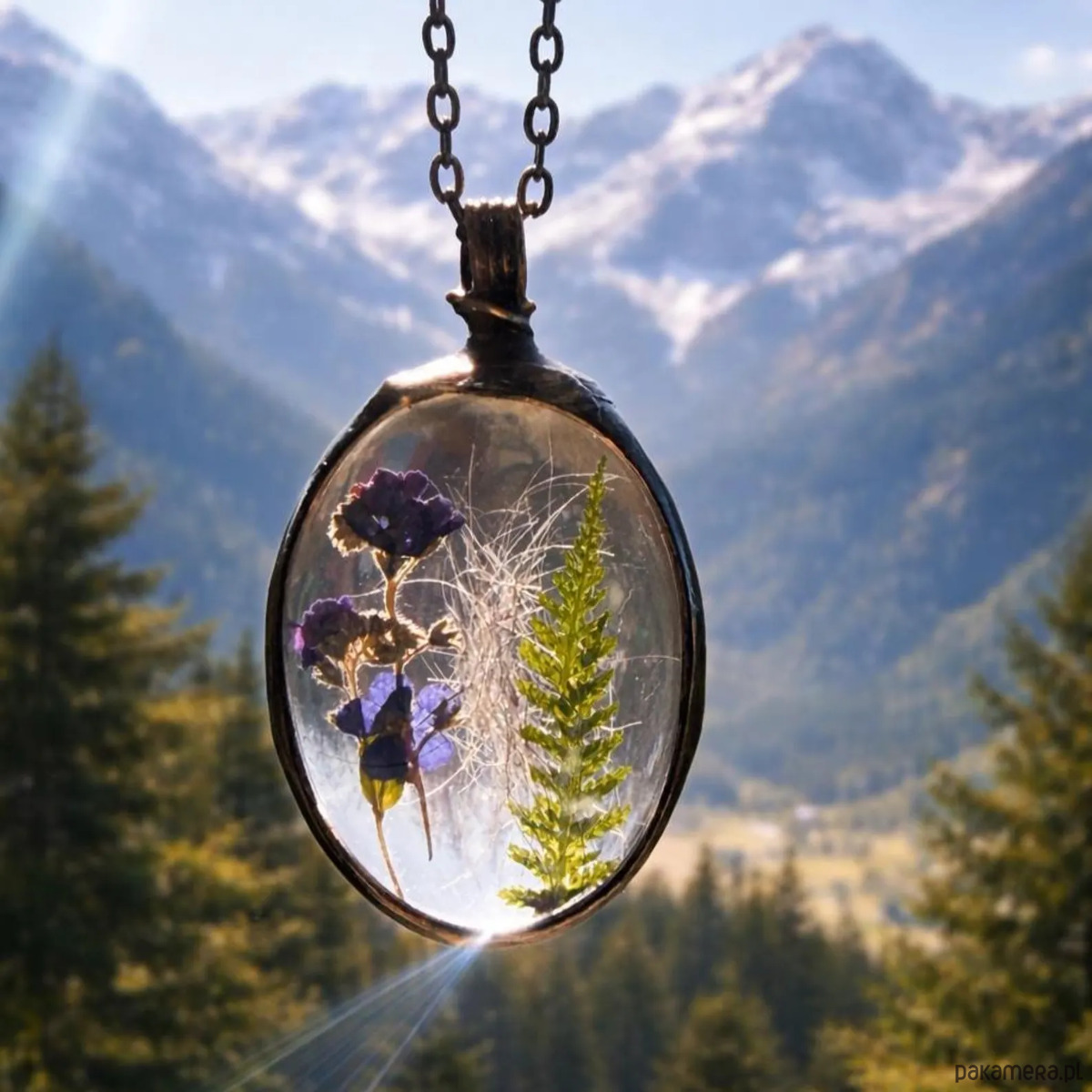 Wisiorek wykonujemy z dwóch w pełni przezroczystych tafli szkła, które pozwalają subtelnie wyeksponować zawartość. Całość jest ręcznie lutowana metodą Tiffany przy użyciu bezołowiowej cyny i wykończona w odcieniu starego srebra. Każdy egzemplarz powstaje indywidualnie w naszej pracowni MARIAELA w Polsce.