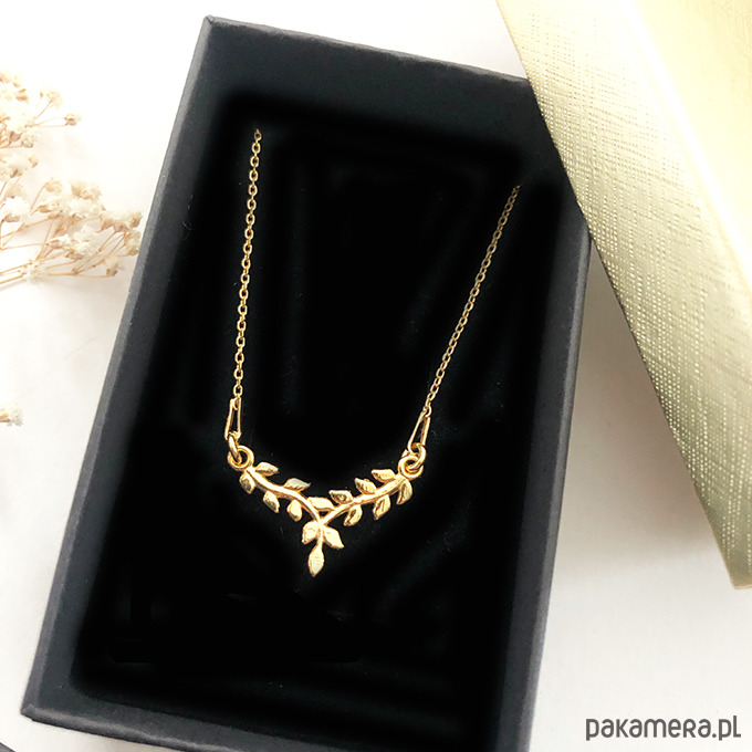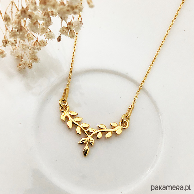 Piękny, złocony naszyjnik z subtelną zawieszką w kształcie gałązek. Wykonany z wysokiej jakości srebra próby 925, pokrytego warstwą 24-karatowego złota. To wyjątkowy dodatek, który łączy w sobie elegancję i naturalną lekkość, idealnie podkreślając kobiecy styl zarówno na co dzień, jak i na specjalne okazje.