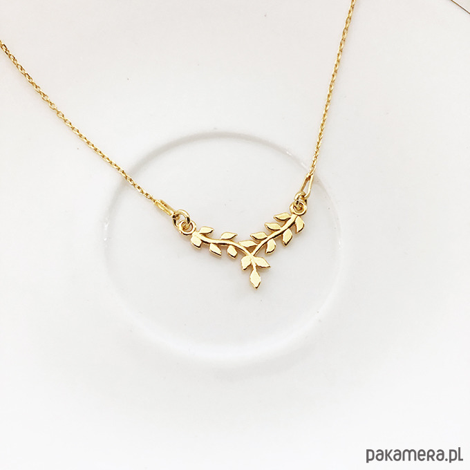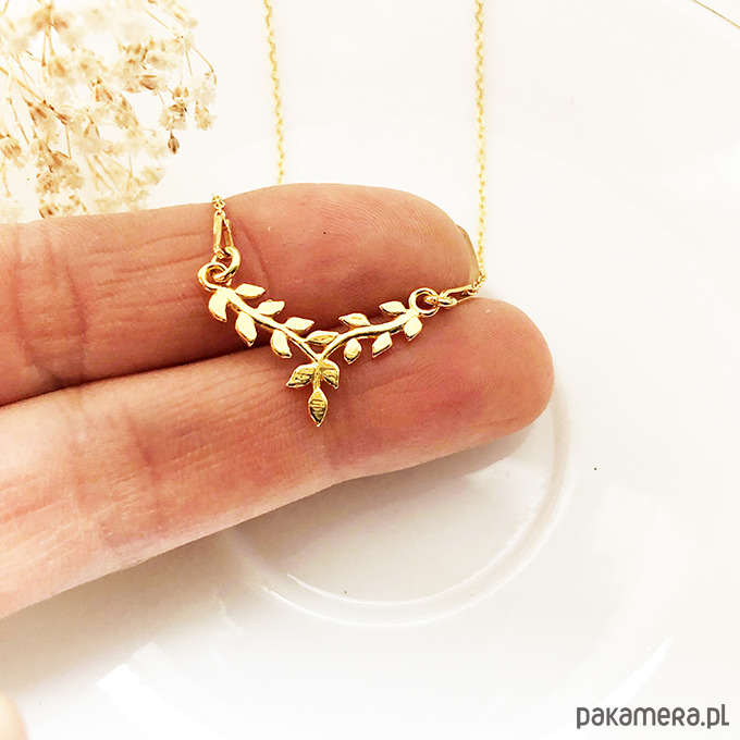 Naszyjnik z gałązką , złote listki prezent