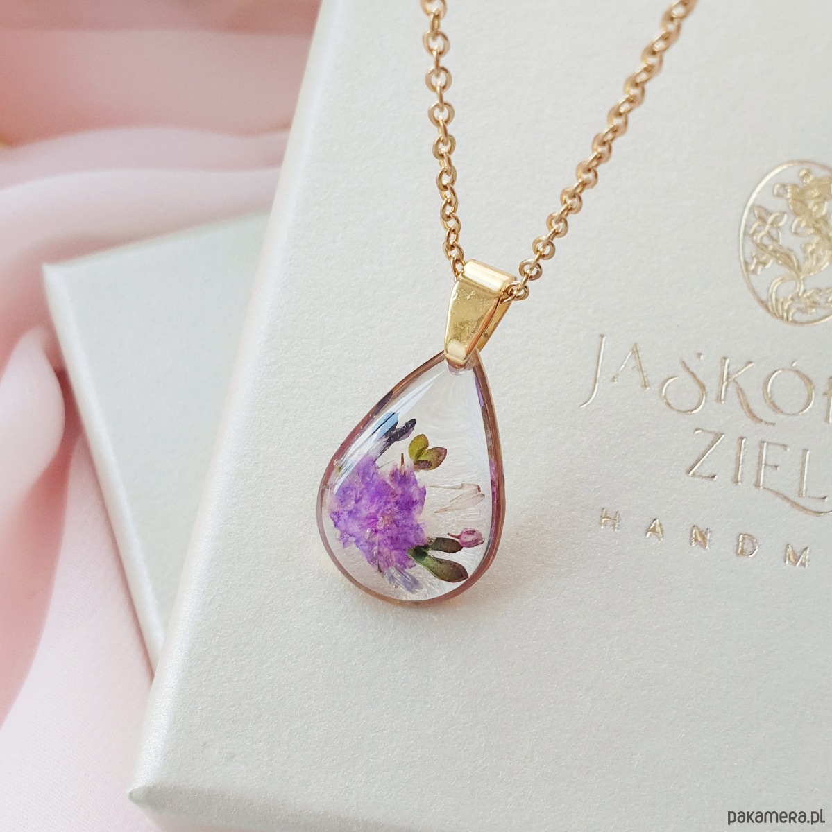 Materiał: stal szlachetna (nierdzewna), żywica epoksydowa, ususzony kwiat;