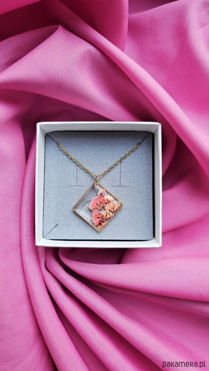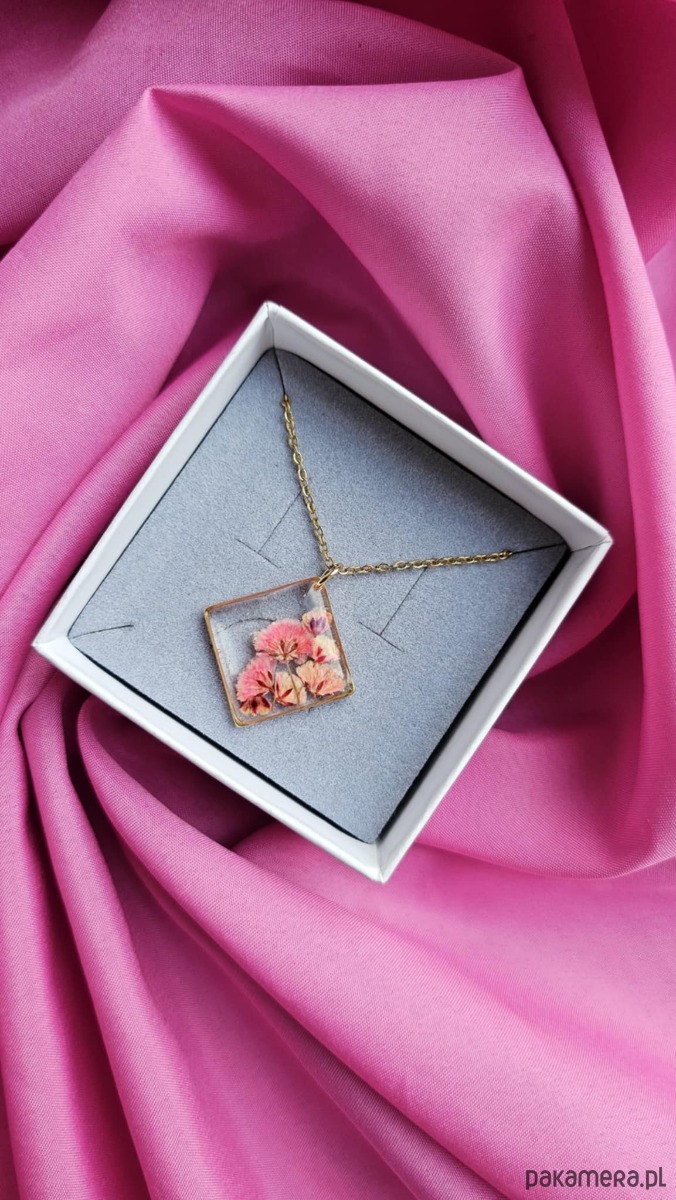 Naszyjnik z kwiatami suszonej gipsówki to unikatowa, ręcznie wykonana biżuteria z serii Harmonia.