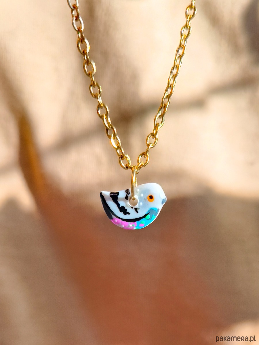 Naszyjnik z gołębiem to biżuteria handmade z ptasim motywem, stworzona z myślą o osobach, które lubią biżuterię z humorem i wyraźnym charakterem. Kolorowy gołąb nadaje całości lekkości i sprawia, że naszyjnik wyróżnia się na tle klasycznych dodatków. To dobry wybór dla fanów ptaków, miłośników zwierzęcych motywów oraz osób szukających oryginalnej biżuterii na co