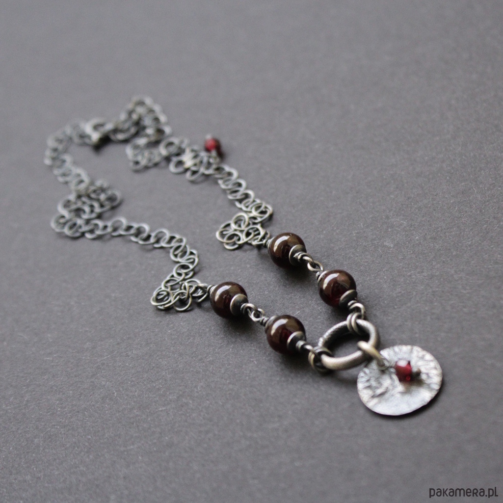 Oryginalny naszyjnik wykonany został z oksydowanego srebra próby 925 oraz kuleczek granatów wielkości 0,6 cm.