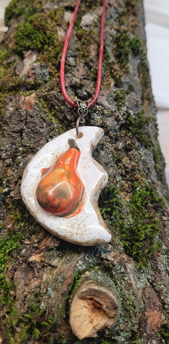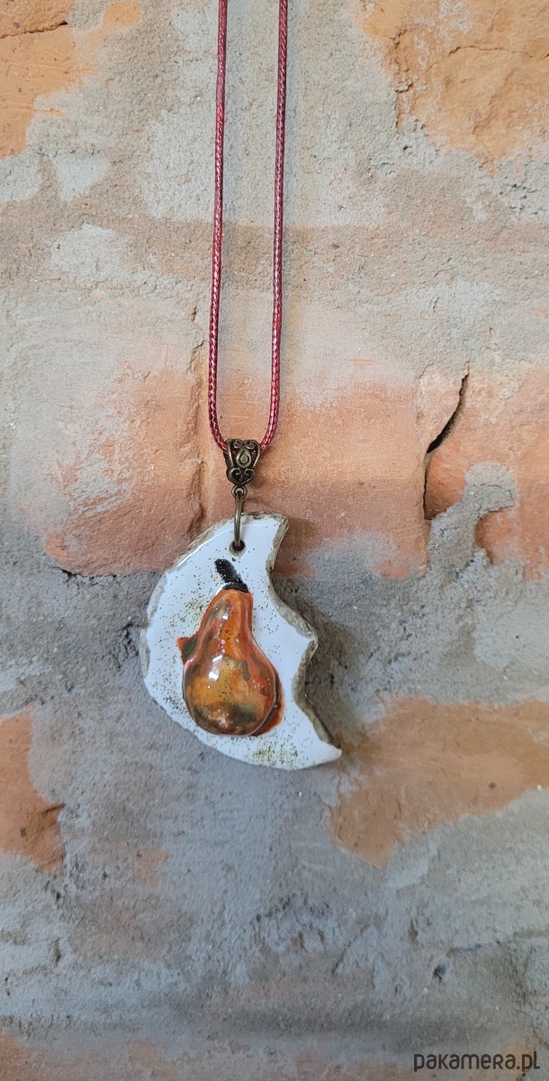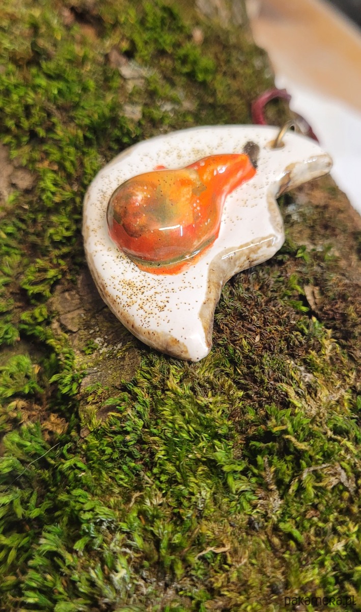 Ten wisior to małe dzieło sztuki użytkowej, wykonane w całości ręcznie – od uformowania gliny, przez wypał, aż po ręczne malowanie i szkliwienie.