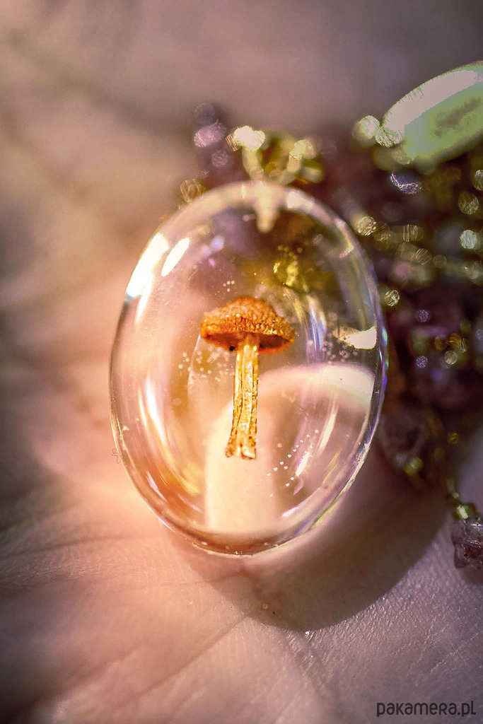 -Unikalny design: Każdy naszyjnik jest niepowtarzalny dzięki naturalnemu grzybowi zatopionemu w żywicy