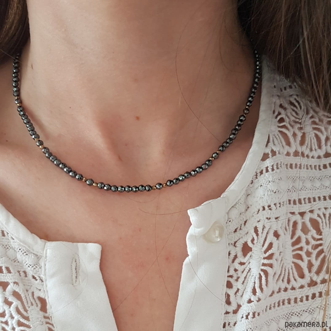 Naszyjnik wykonany na wytrzymałej lince jubilerskiej z kamieniami naturalnymi: hematytem.