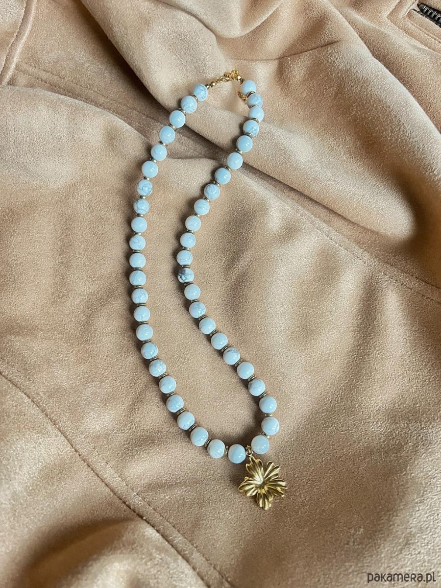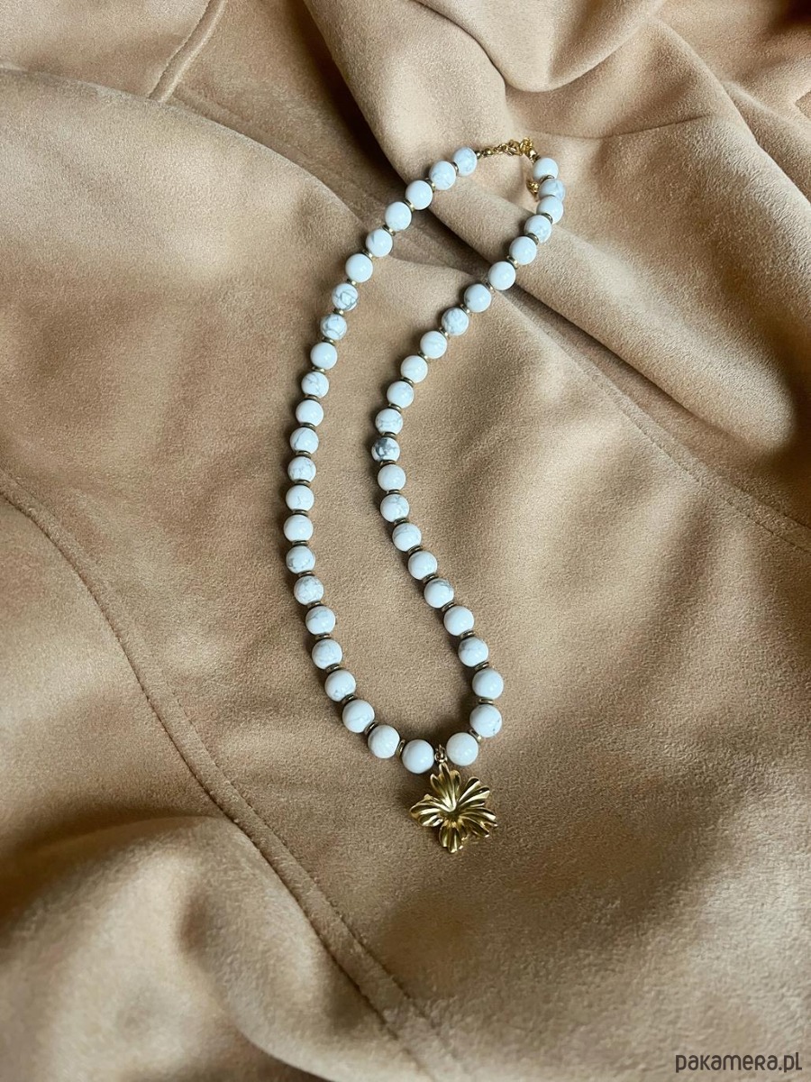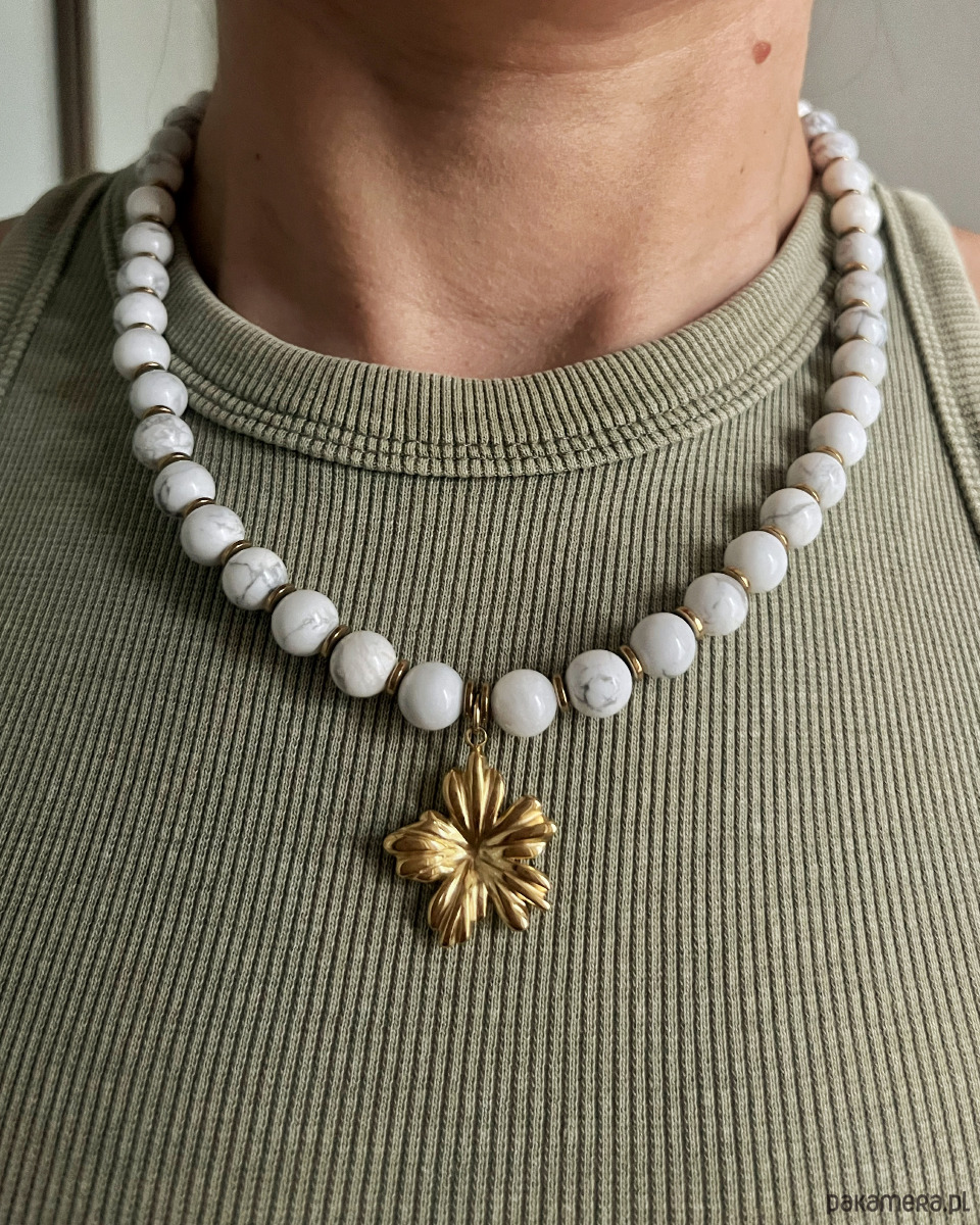 Naszyjnik z howlitu i hematytu z zawieszką kwiatem