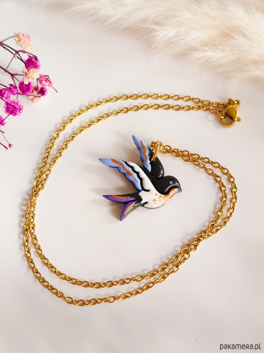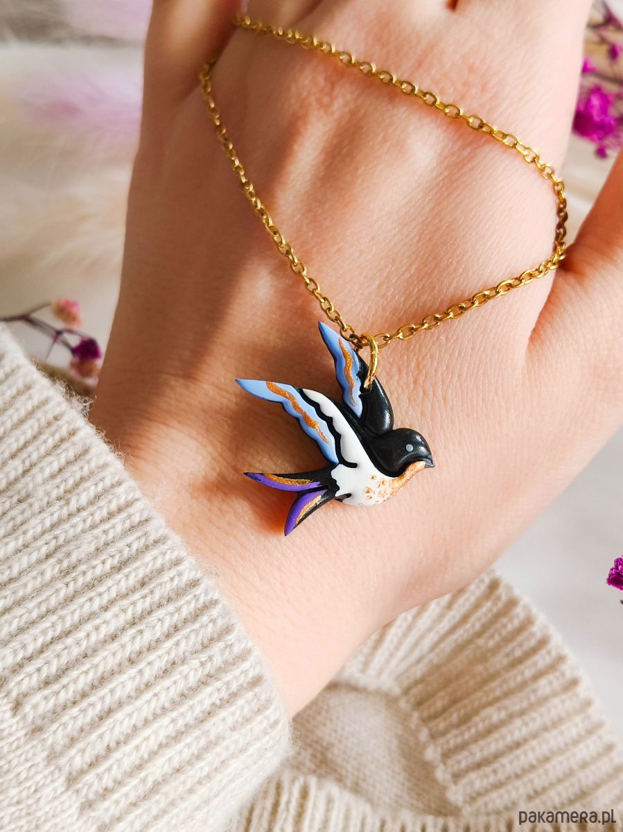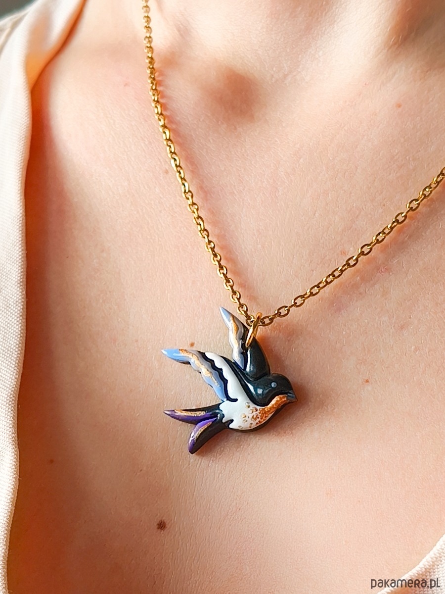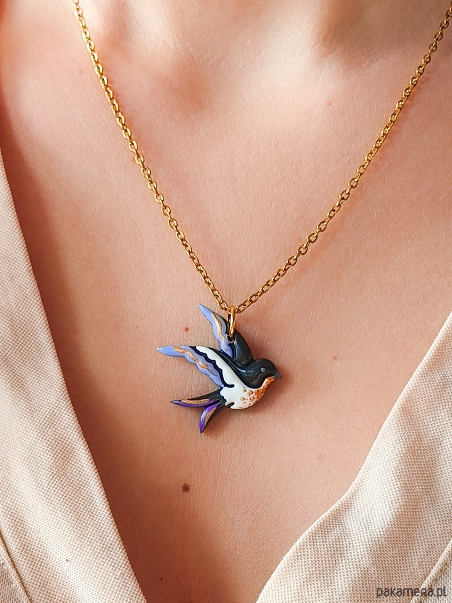 Naszyjnik z jaskółką, wisiorek dla miłośnika ptaków, mały ptaszek, boho