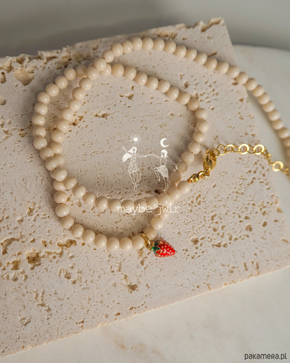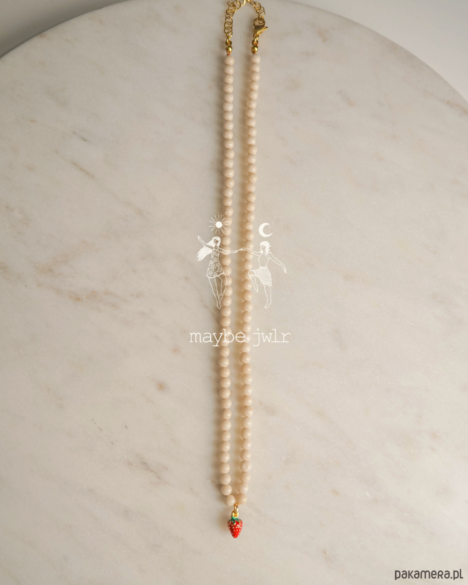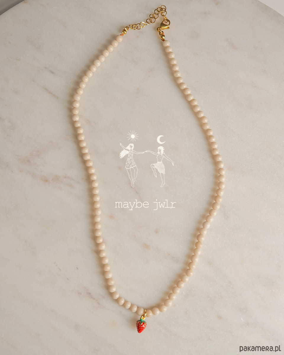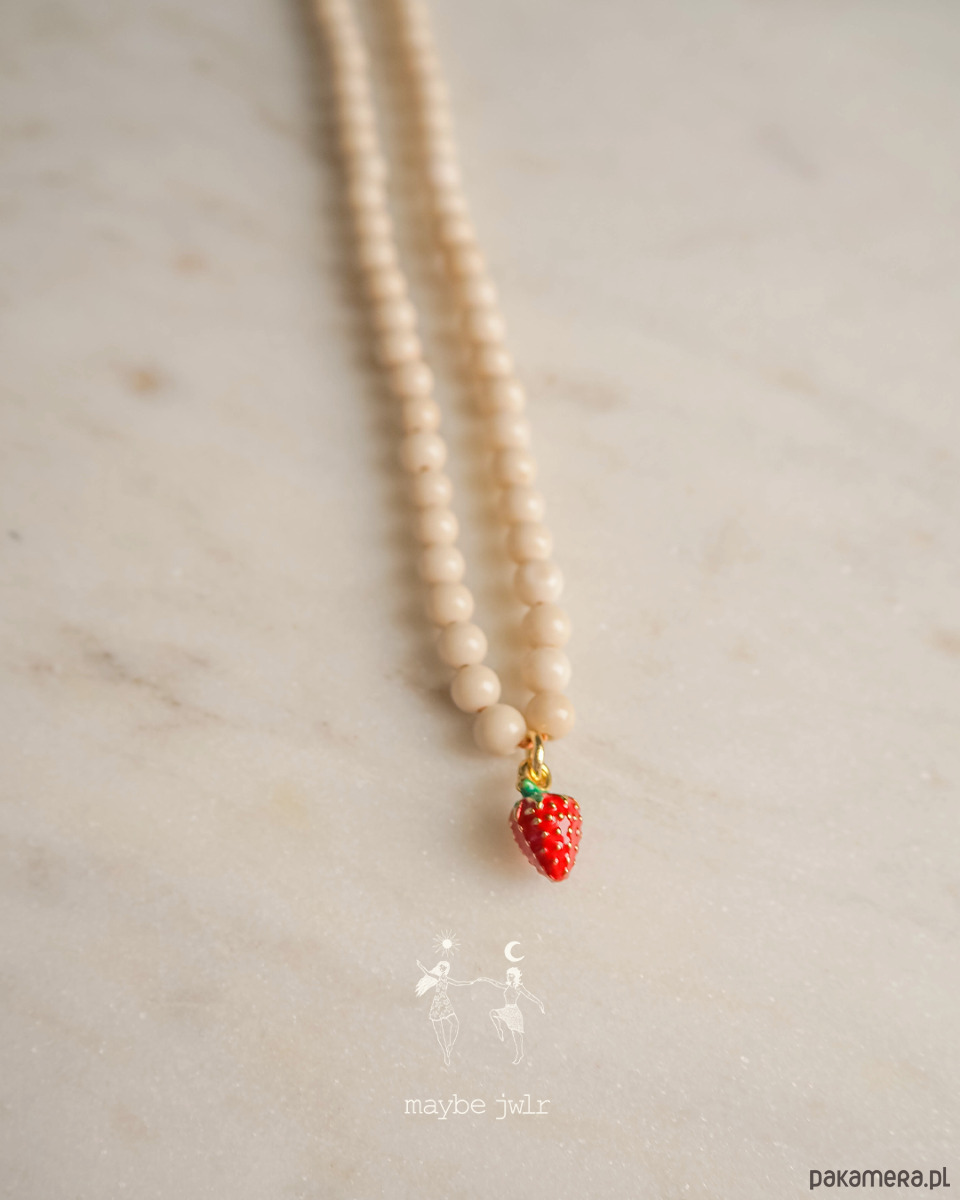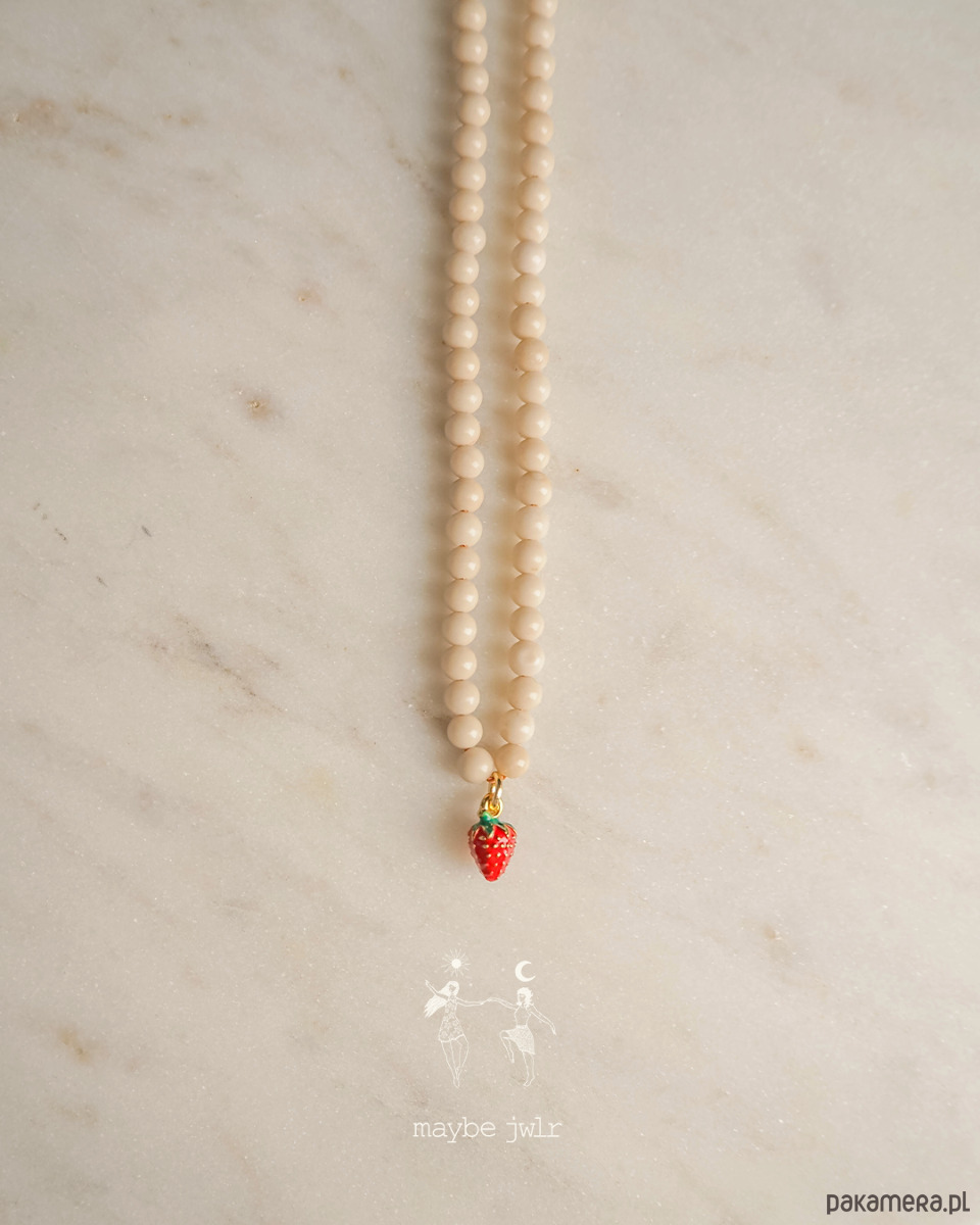 Naszyjnik z jasnych kamieni rzecznych z poziomką