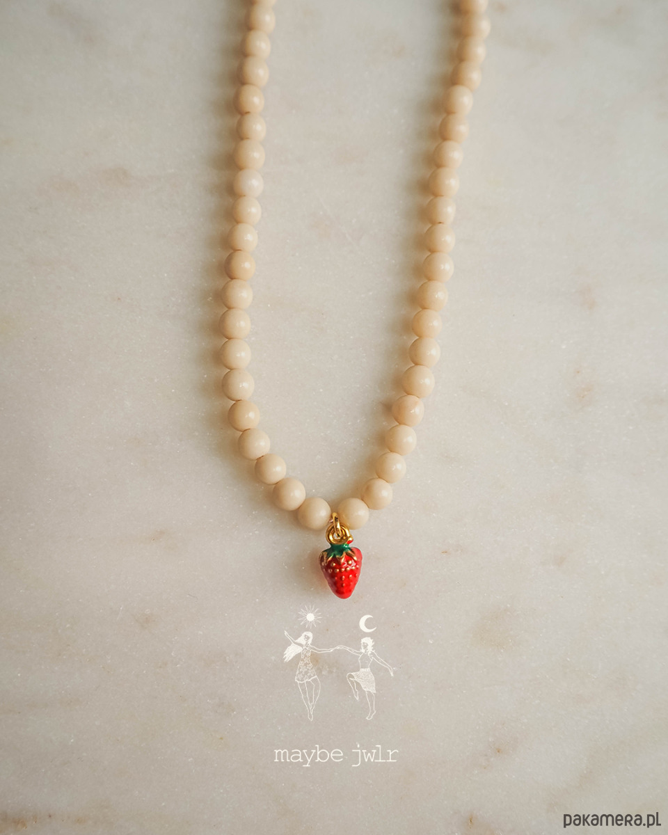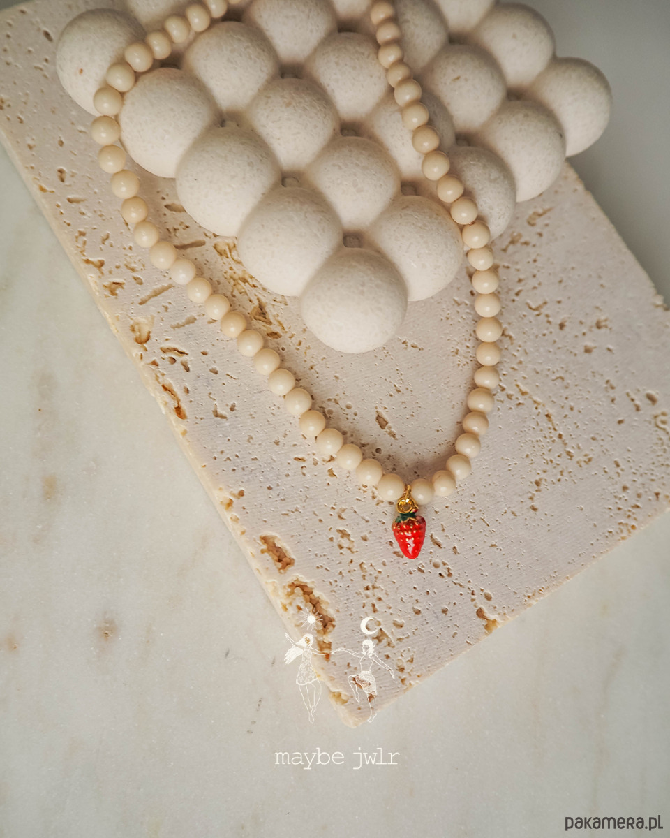 Naszyjnik z jasnych kamieni rzecznych z poziomką