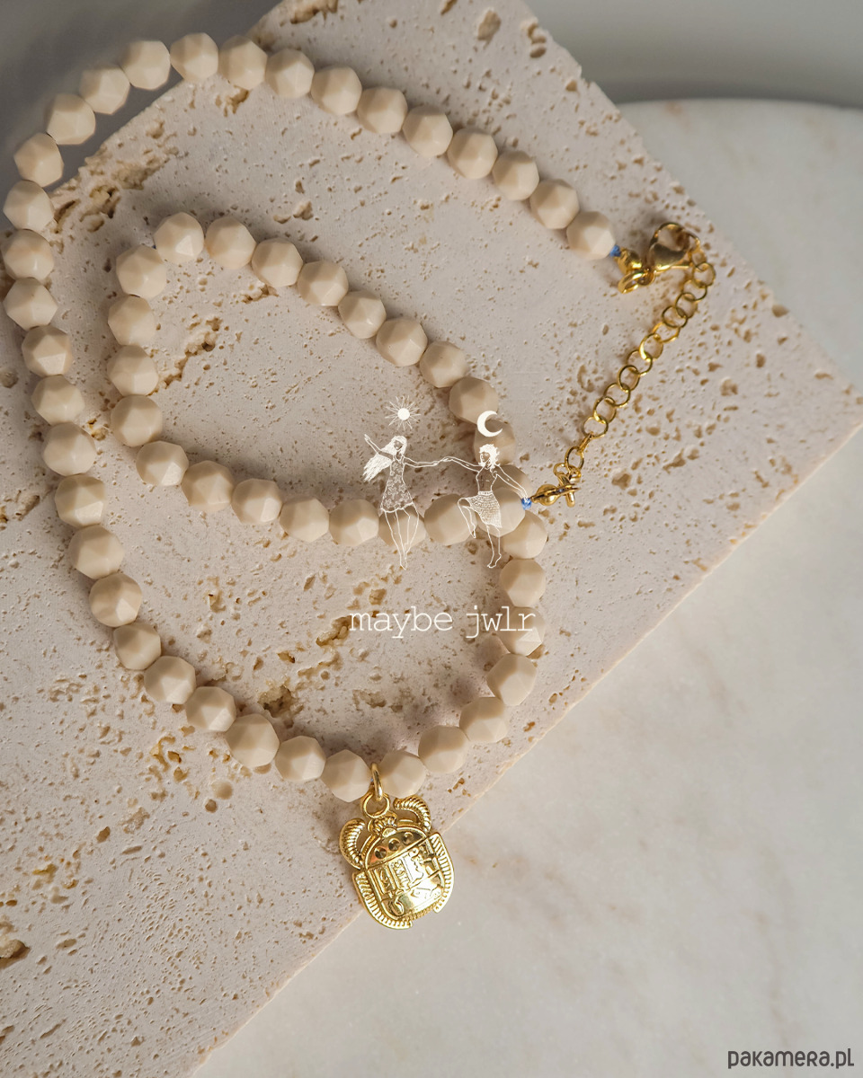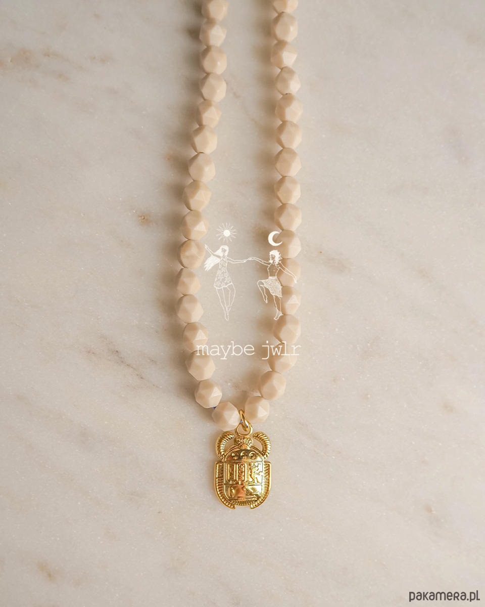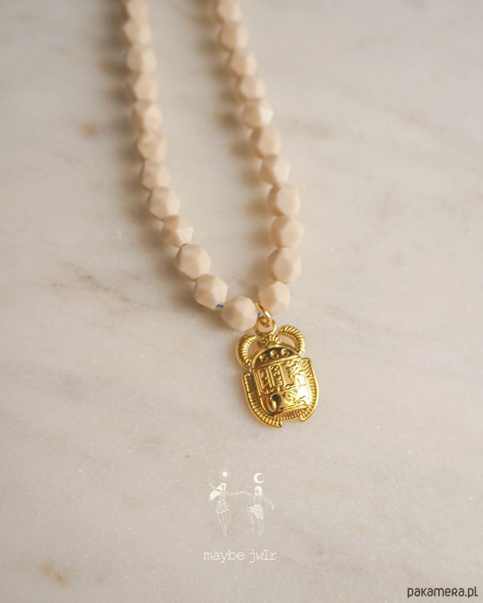 Zawieszka - Skarabeusz jest postrzegany jako symbol przynoszący szczęście, ochronę i odrodzenie, wywodzący się ze starożytnego Egiptu, gdzie wierzono, że przynosi pomyślność, siłę oraz pomaga w transformacji i osiąganiu nowych celów.