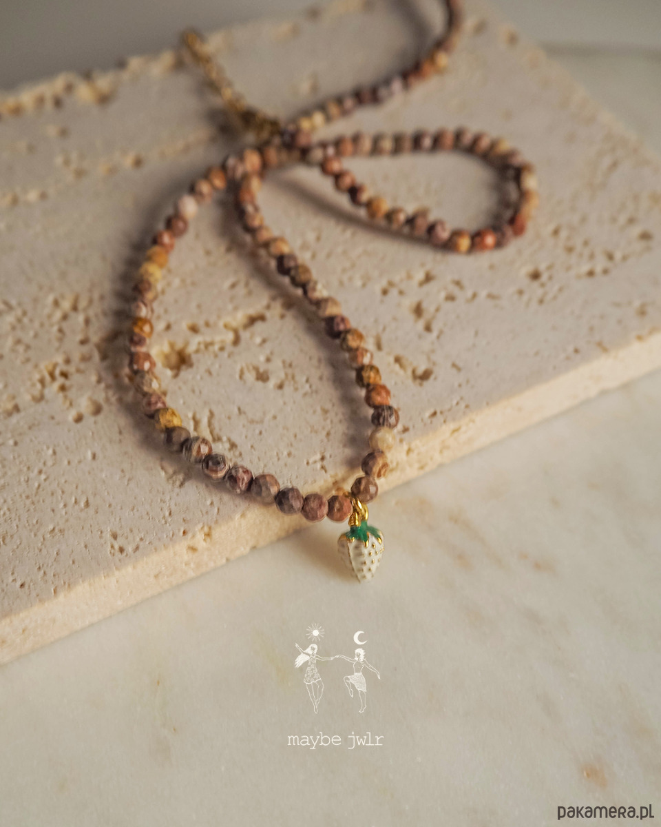 Naszyjnik z jaspisu leopard z poziomką
