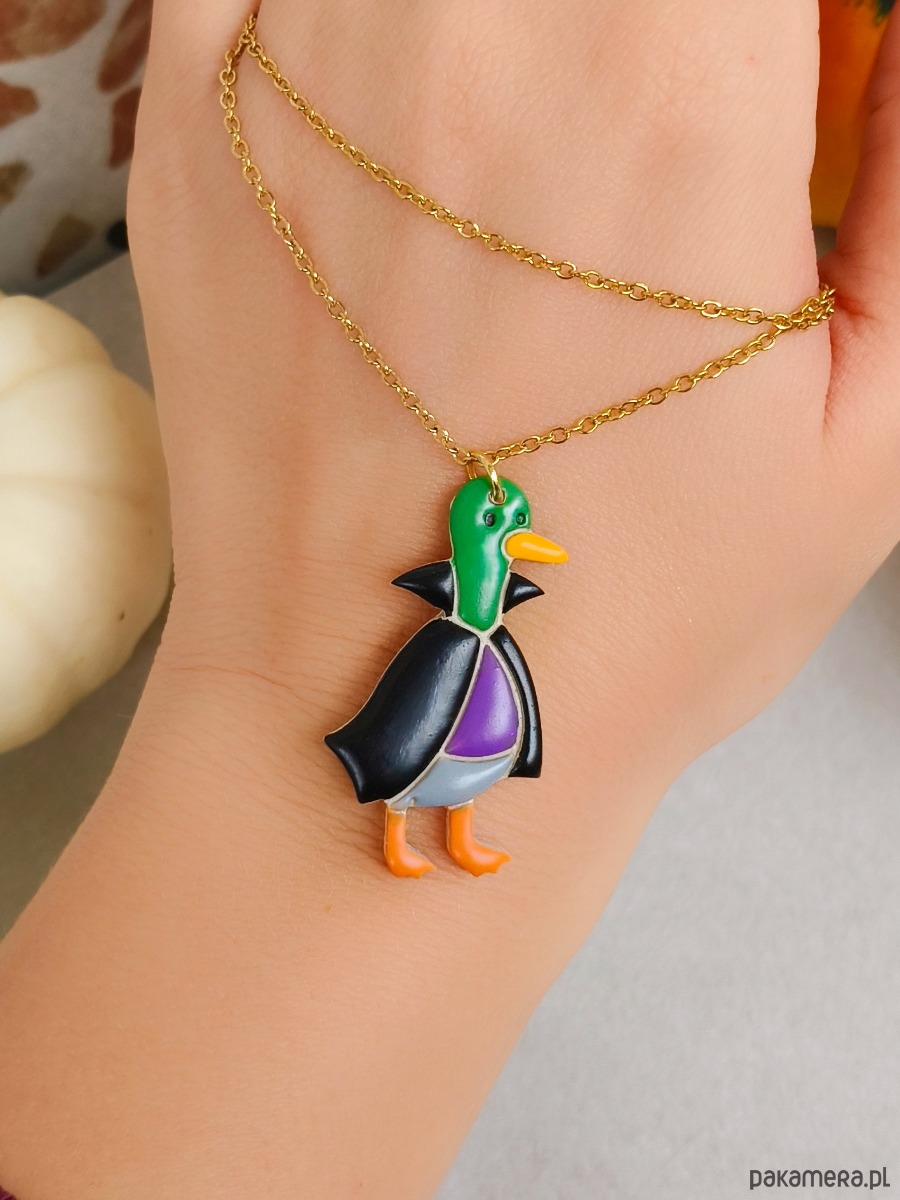 Naszyjnik z kaczorem wampirem, amulet na halloween, dodatek do stylizacji