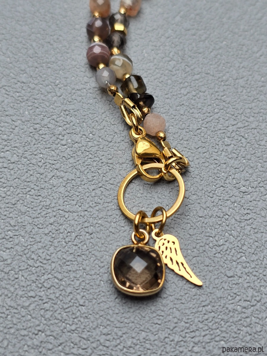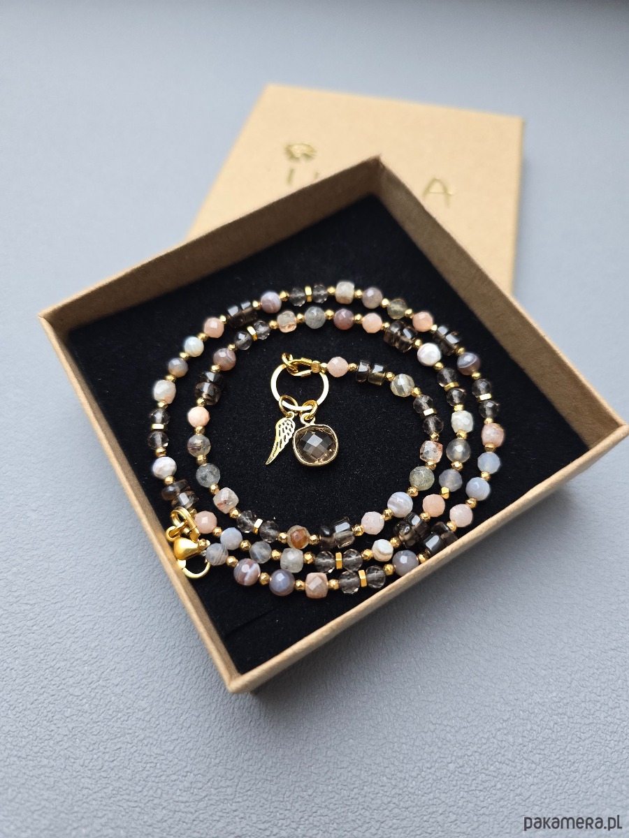 Wykorzystane kamienie: kwarc dymny, agat botswana, kamień słoneczny