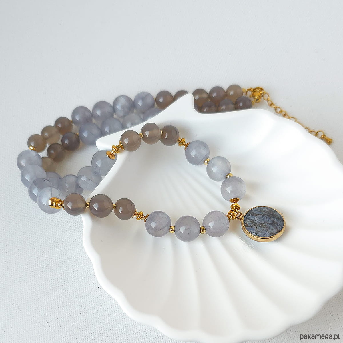 Naszyjnik z kamieni naturalnych: agat, jadeit
