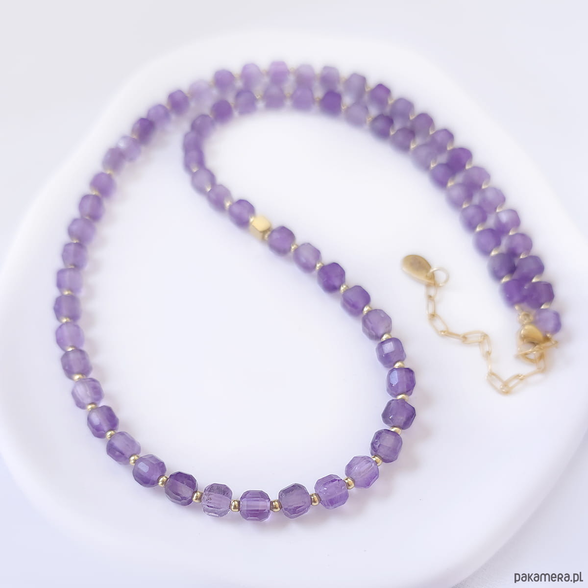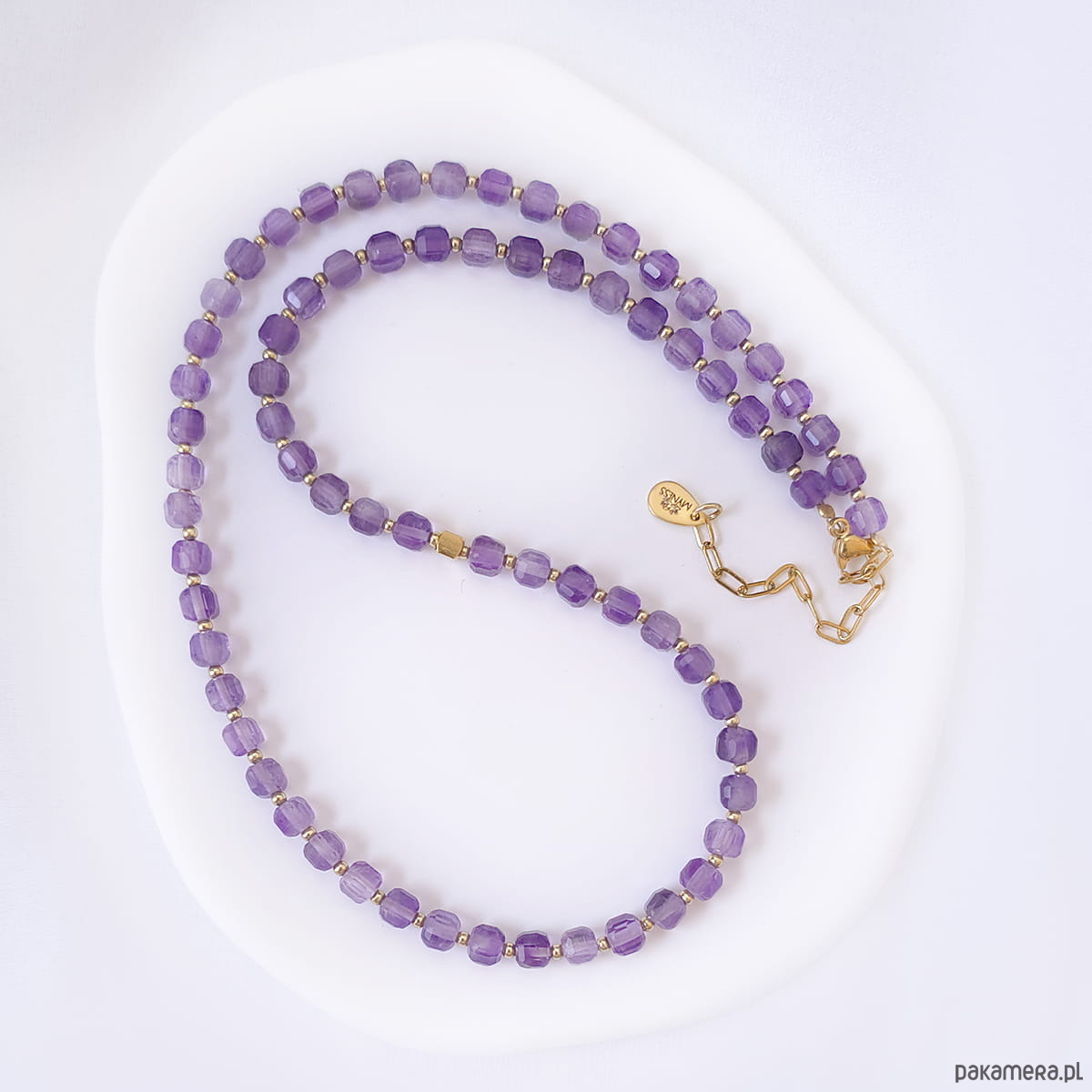 Ametyst - kamień relaksu i równowagi. Wspiera walkę ze stresem, uwalnia od natłoku negatywnych myśli i emocji. Wspomaga osoby zapracowane, zmęczone i mające problemy ze snem.