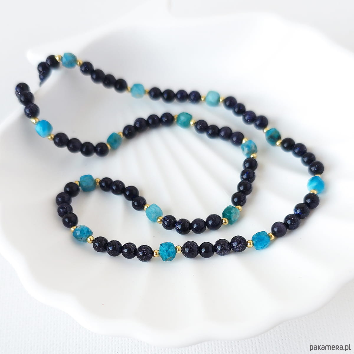 Naszyjnik z kamieni naturalnych: apatyt, noc kairu